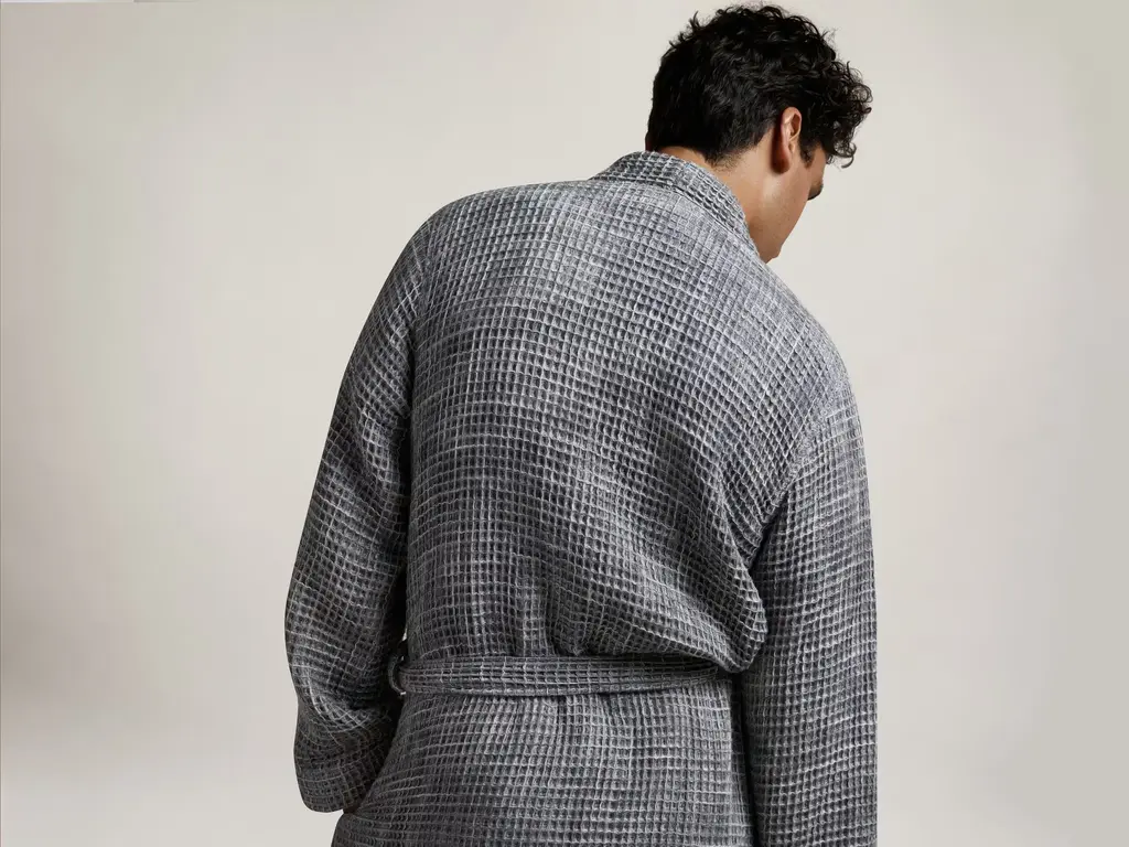 Relax in this lightweight, softly textured bathrobe inspired by the world's finest spas. Features two hip pockets, a folded collar and secure waisttie.