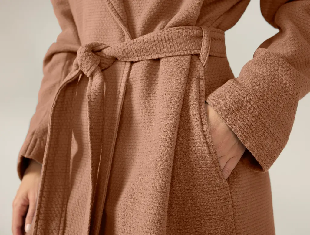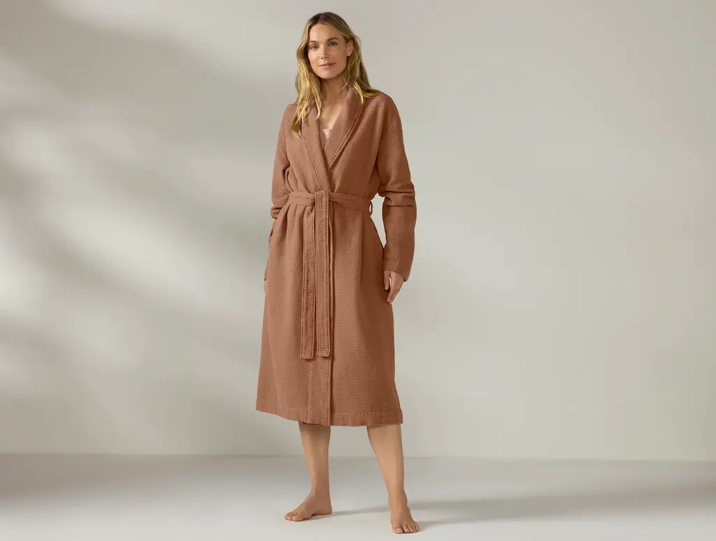 Crafted from 100% organic cotton, grown and woven in Turkey, the Adriatic Organic Robe features a lightweight, relaxed weave that’s naturally absorbent and nourishes your skin. The garment-dyed process enhances the soft, textured feel and creates unique color variations, making each piece one-of-a-kind. Designed with a women’s fit and slightly tapered waistline for a more tailored look.