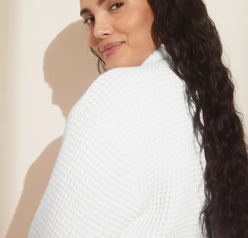 Inspired by our bestselling layer, the Waffle Robe has the same covetable breathability and touchable texture as our Waffle Bed Blanket. It starts with the highest quality threads sourced from the finest long-staple 100% organic cotton on earth. The result: a dimensional, cozy bath fabric that gets loftier with every wash. The Feel Plush-yet-springy texture Breathable and absorbent weight The Look Dimensional peaks and valleys