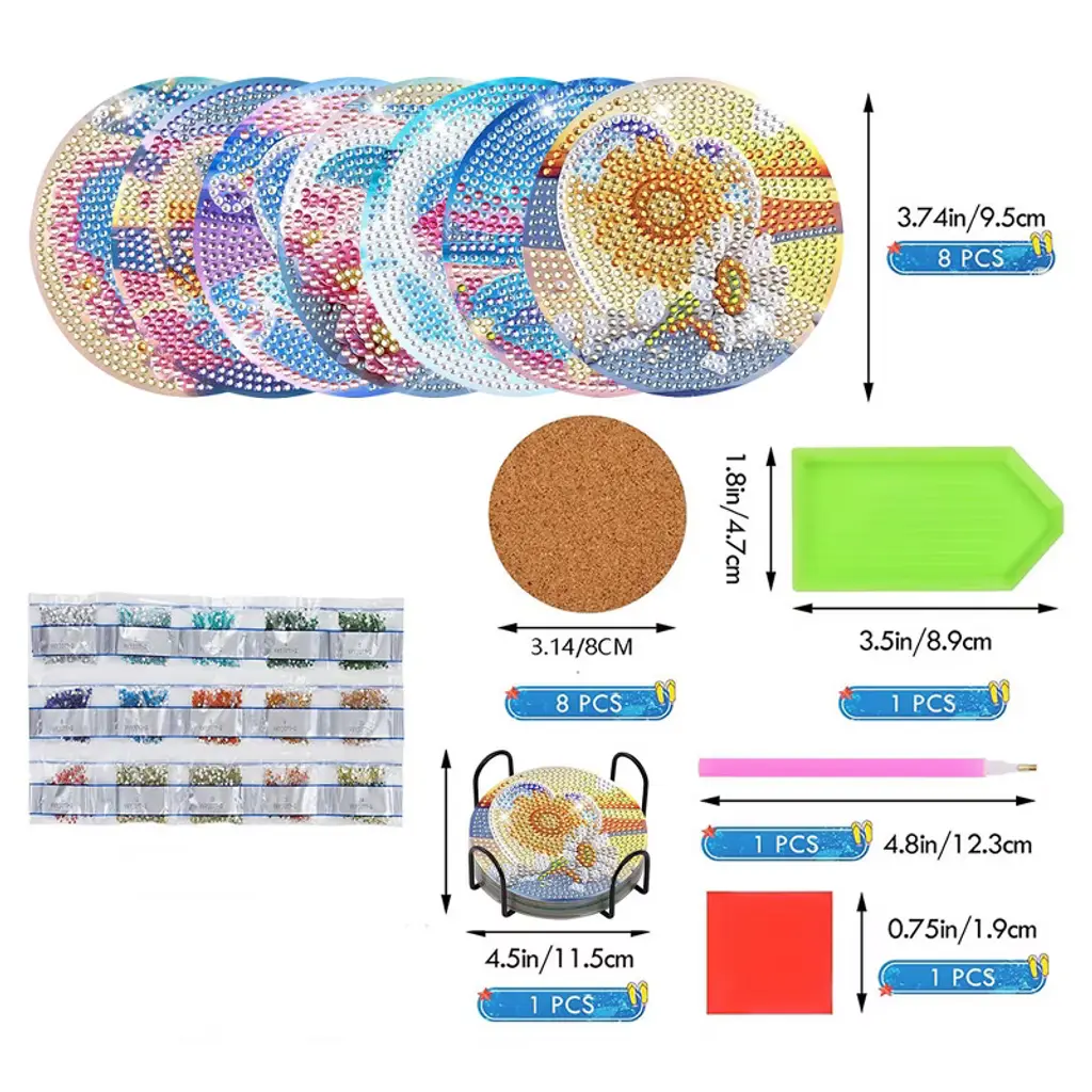Features: EASY TO OPERATE: The kit comes with a tool that allows you to complete 8 coasters. Find the rhinestones you need according to the numbers/letters on the coaster (the corresponding numbers/letters are marked on the bag) and start making. Description: Name: Coasters Material: acrylic, wood, resin drill, iron frame Size: Coaster 10x10cm Specifications: 8 pieces in a set Pattern: love flower Uses: heat insulation Packing list: 8 x Coasters++8 x Cork Pad+1 x coasters holder +1xDrill packs +1 x clay glue +1 x diamond pen +1 x diamond tray Note: Different displays may cause the color of the item in the picture a little different from the real thing. Manual measuring,please allow 1~3mm error,thank you.