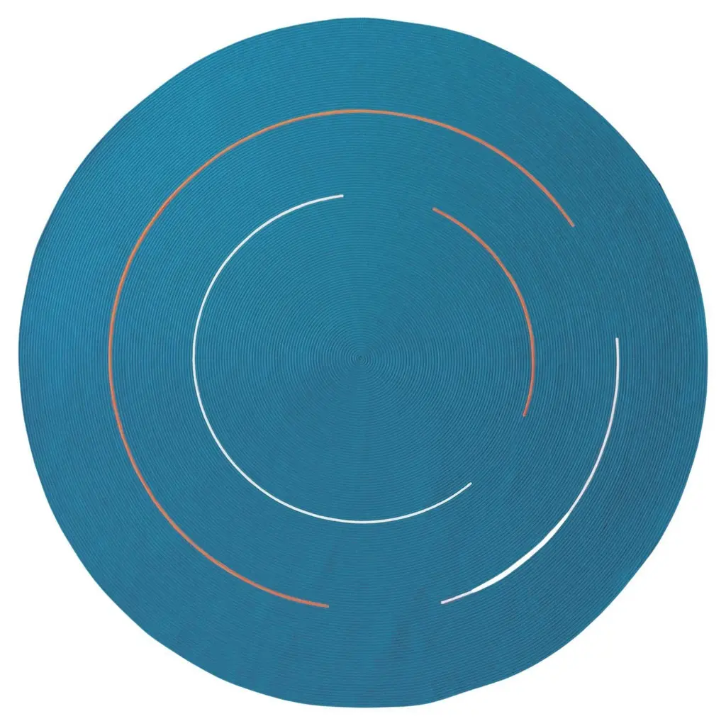 This set of six brass coasters belongs to the Aniconismo Collection of designs following the tenets of aniconism, banning the depiction of living creatures shared by many cultures. Echoing kinetic forces with their concentric design, they are unique, handcrafted pieces decorated using oxides. The back velvety cover ensures optimized grip.