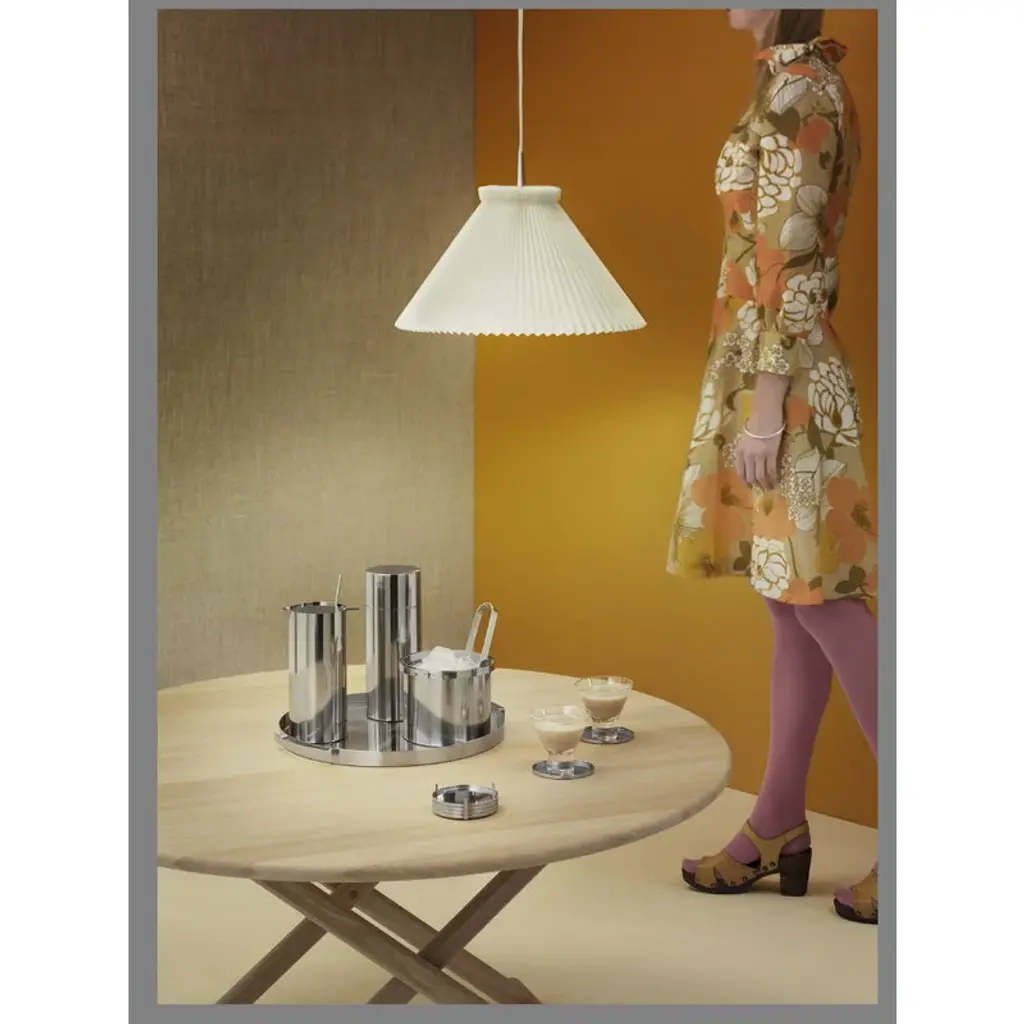 The Arne Jacobsen coaster set by Stelton is part of the Cylinda Line hollowware range from 1967. Since the very beginning, Cylinda Line has been an undisputed icon of Scandinavian design. Today, Arne Jacobsen's legendary range is part of numerous permanent collections at design museums all over the world. Cylinda Line is known for its understated beauty and utter functionalism – its design is based on different variations of cylindrical forms and every piece gains its own characteristics through slight alterations in design. Even though the Cylinda Line range is a collection, its pieces work very well separately or mixed with other tableware.