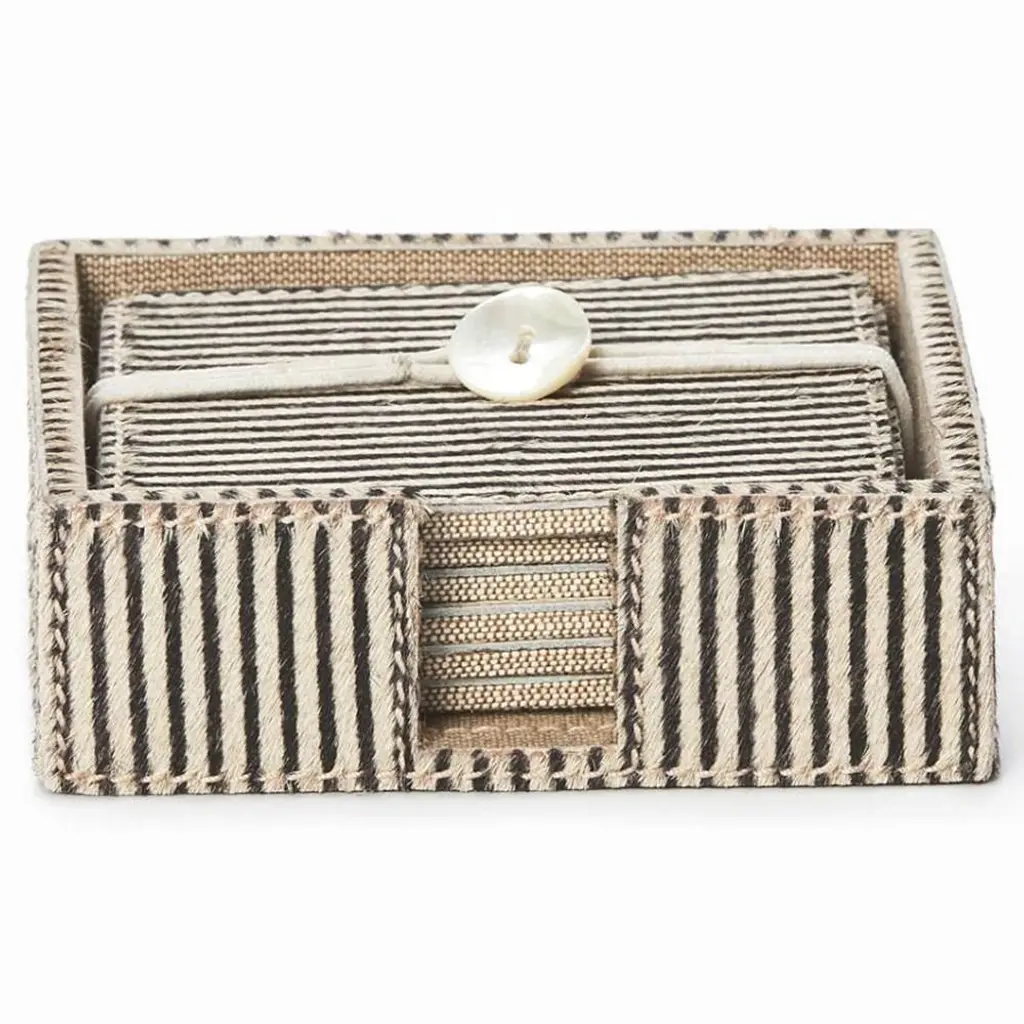 Bandar Brown Candy Striped, Coasters Set Of 6, Hair-On-Hide