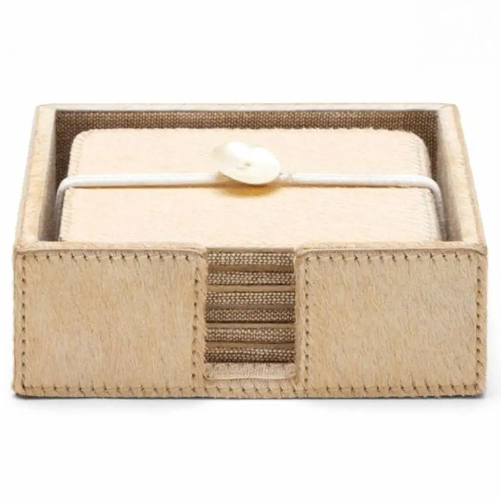 Set a welcoming table in spots or stripes. Our sturdy hair-on-hide coasters will last to the next round, every time. Set of six is held together with a mother-of-pearl button. Blue Pheasant's products are handmade with care by artisans using natural materials. They are not mass produced, so variation between products should be expected, and this is why we love them! It is these irregularities that makes Blue Pheasant what it is—a special brand whose collections are distinctly handmade, full of charm and originality you’ll never find in machine-made products.