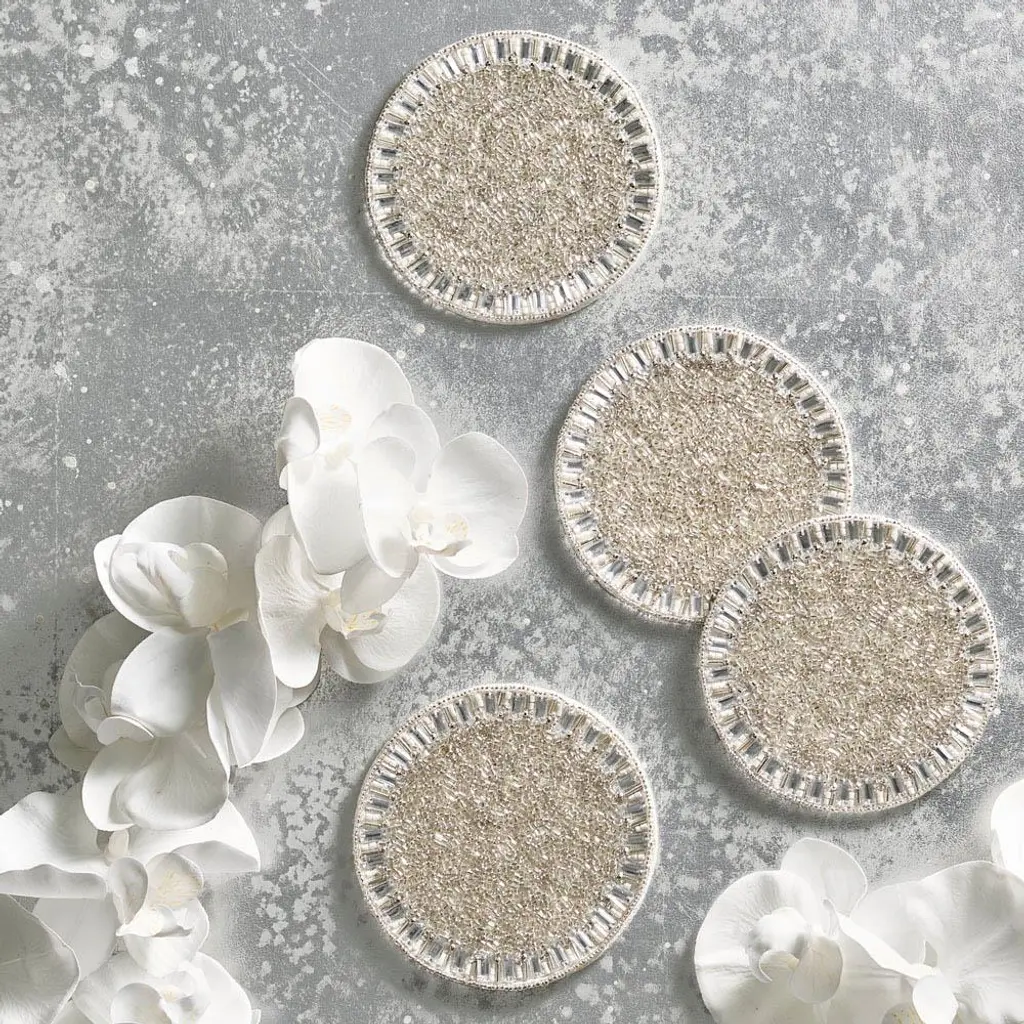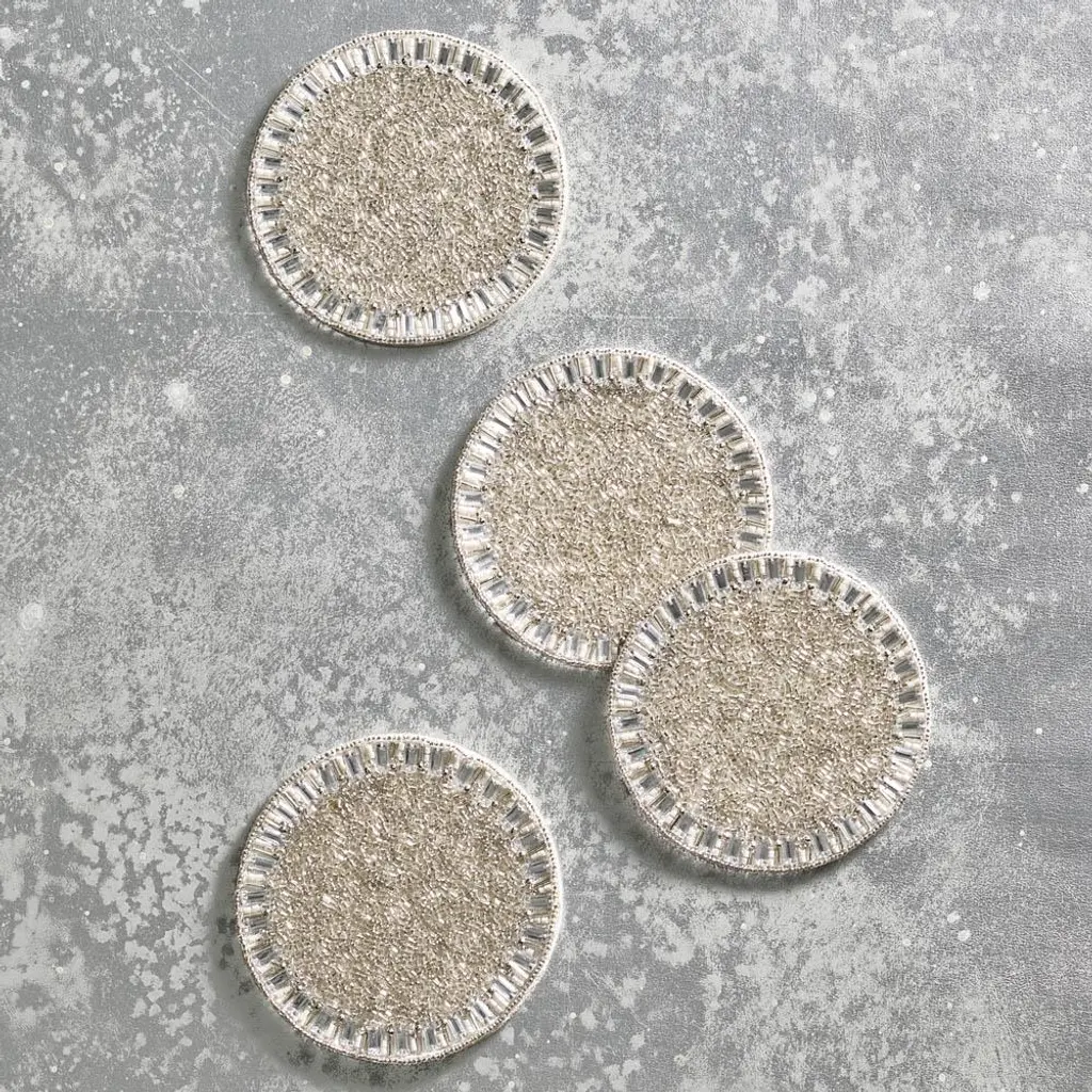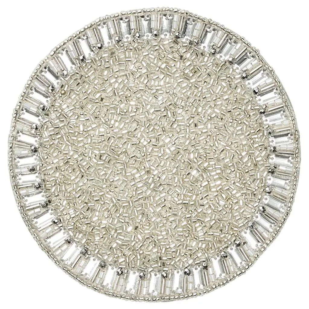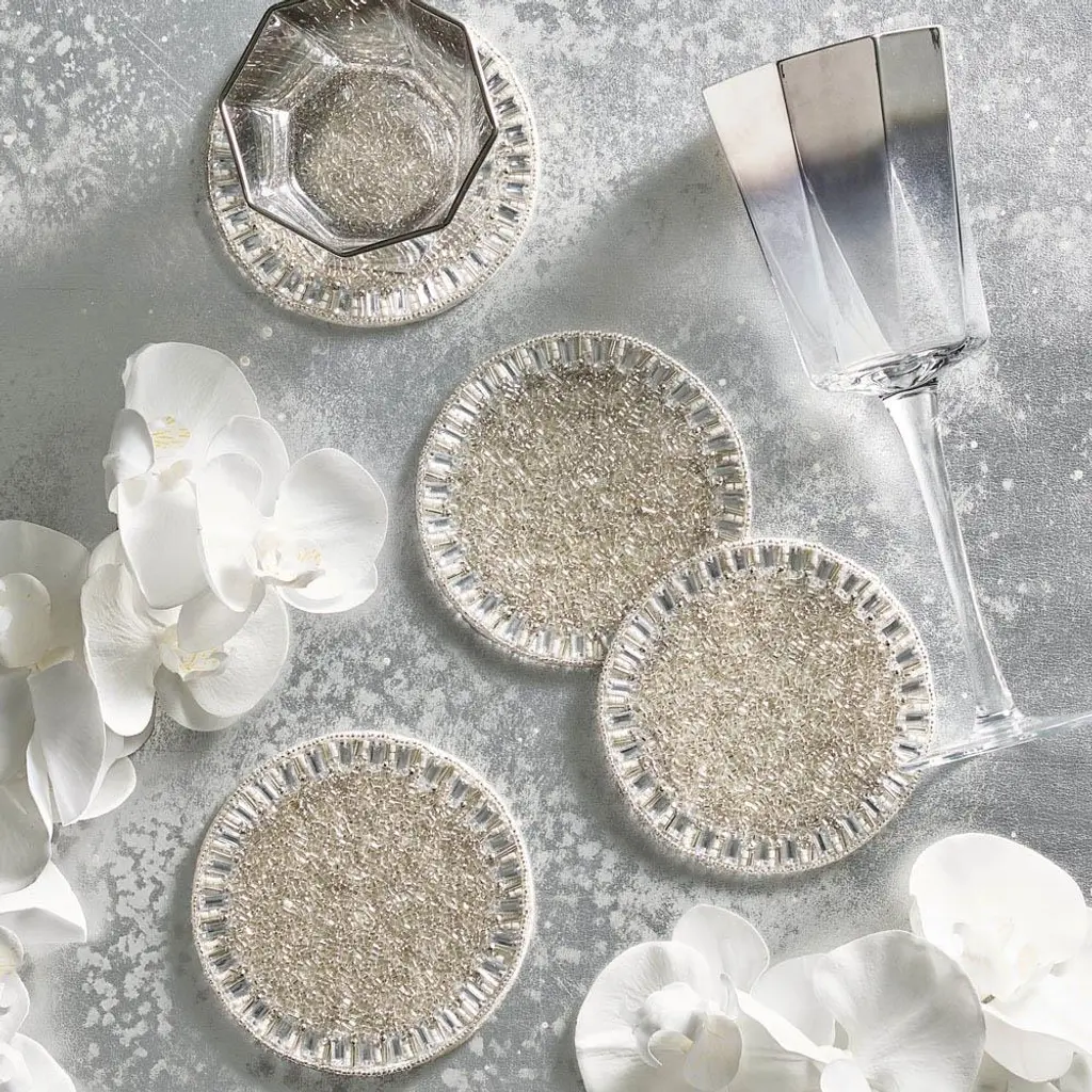 Bevel Hollywood Regency Silver Glass Beaded Coaster - Set Of 4