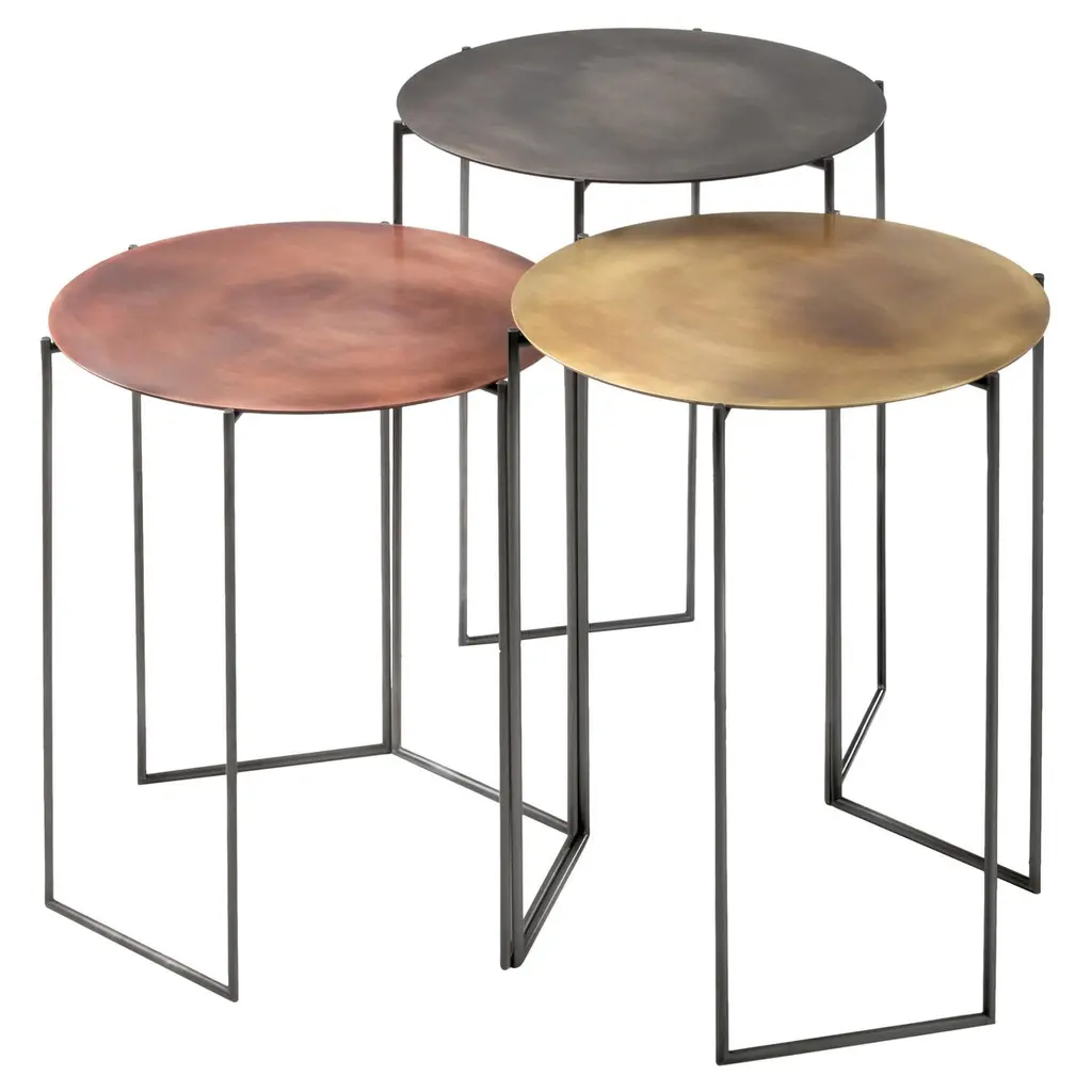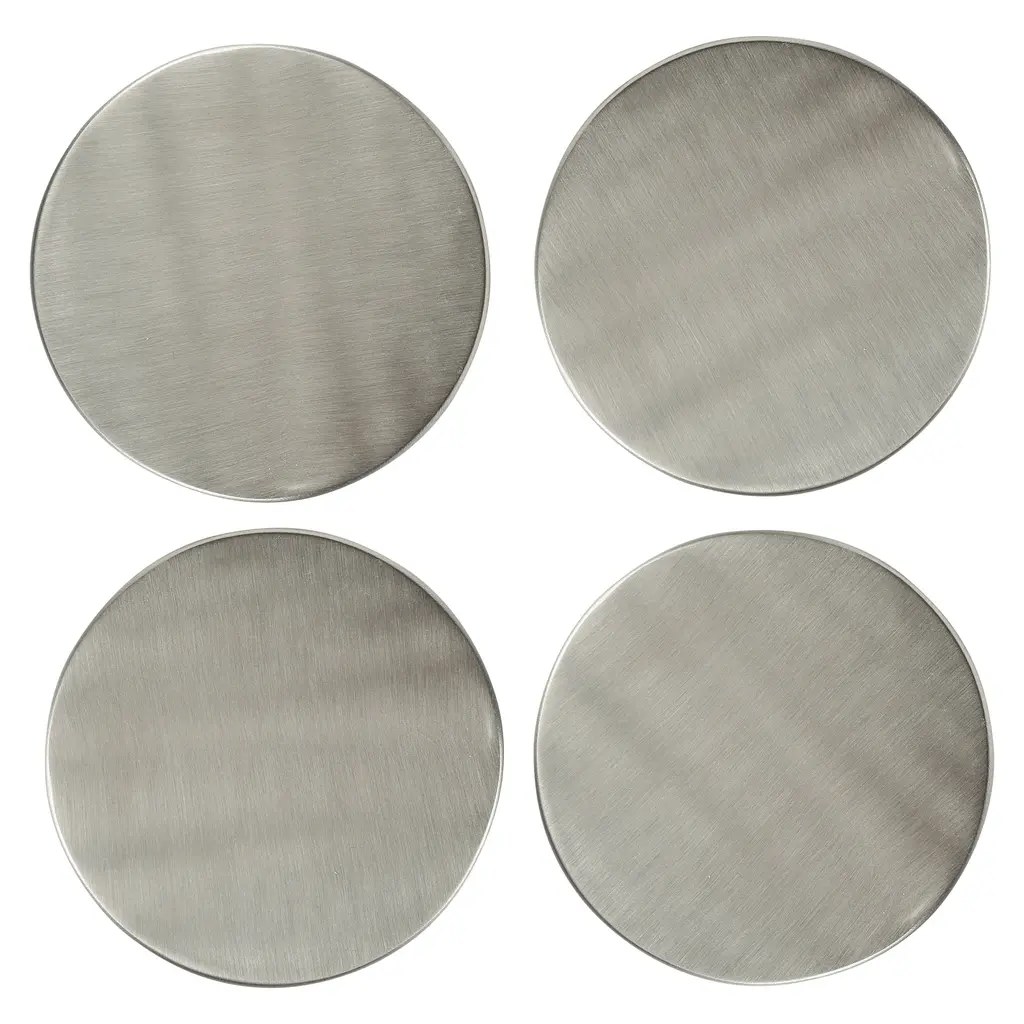 These Coasters are fashioned using pure metals and alloys that will oxidize over time. They are sold in sets of four, and the graphically patinated disks will age gracefully as their lacquer fades to reveal the natural wear of their use. Available in solid brass, copper-plated brass each piece is backed with natural cork to protect your delicate surfaces. Features