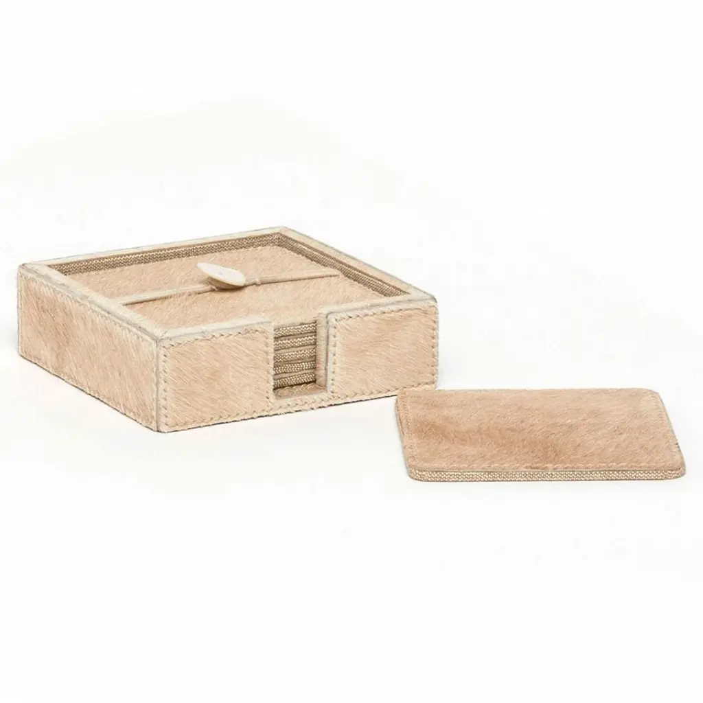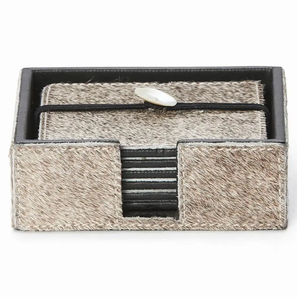 Browmley Rustic Lodge Beige Hair On Hide Coaster - Set Of 6