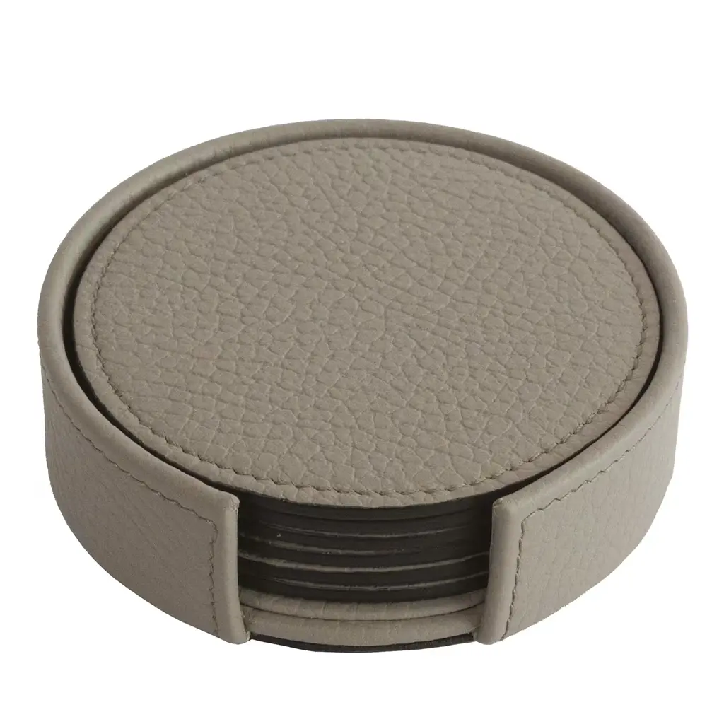An elegant brown shade describes this set of six coasters with a box, perfect to enhance a rustic-chic interior. Simple yet stylish, each piece is handcrafted of fine and soft genuine full-grain leather enhanced with tone-on-tone stitching. Available in 13 other colors to suit any color palette or taste, please check the Artemest catalog for details.