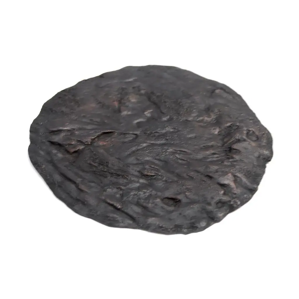 Brutalist coaster 1 by Fakasaka design.Dimensions: W 17 cm D 17 cm H 0.9 cm.Materials: black/brown bronze.Also available in polished bronze.Brutalist coaster 1 cup coaster / bottle coaster / candle tray /small tray. Fakasaka is a design company focused on production of high-end furniture, lighting, decorative objects, jewels, and accessories.Established in 2007, Fakasaka is the eponymous design company by Brazilian artist Fernando Akasaka distinguished by a penchant for producing intricate detailed cast bronze collectible design objects, furniture and jewelries. Fakasaka explores the contrast between the manmade and the natural through shapes and finishes that create a clear aesthetic. The constant challenge to balance elements is met with an outcome that is a striking assortment of bronze furniture and objects in oxidised and polished finishes, accented with precious regional stones, granites and rich prehistoric reptilian motifs.
