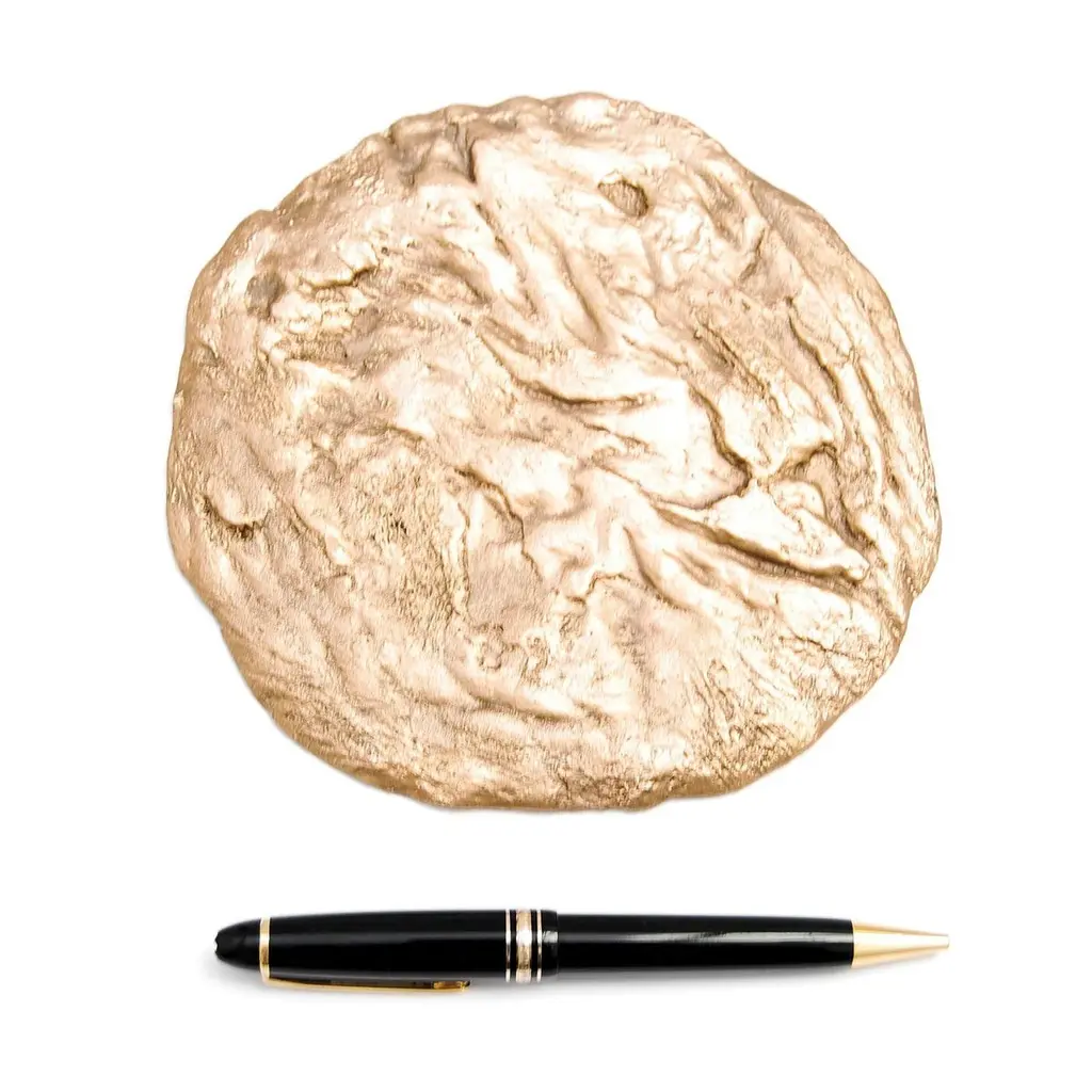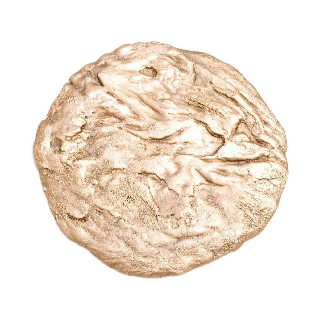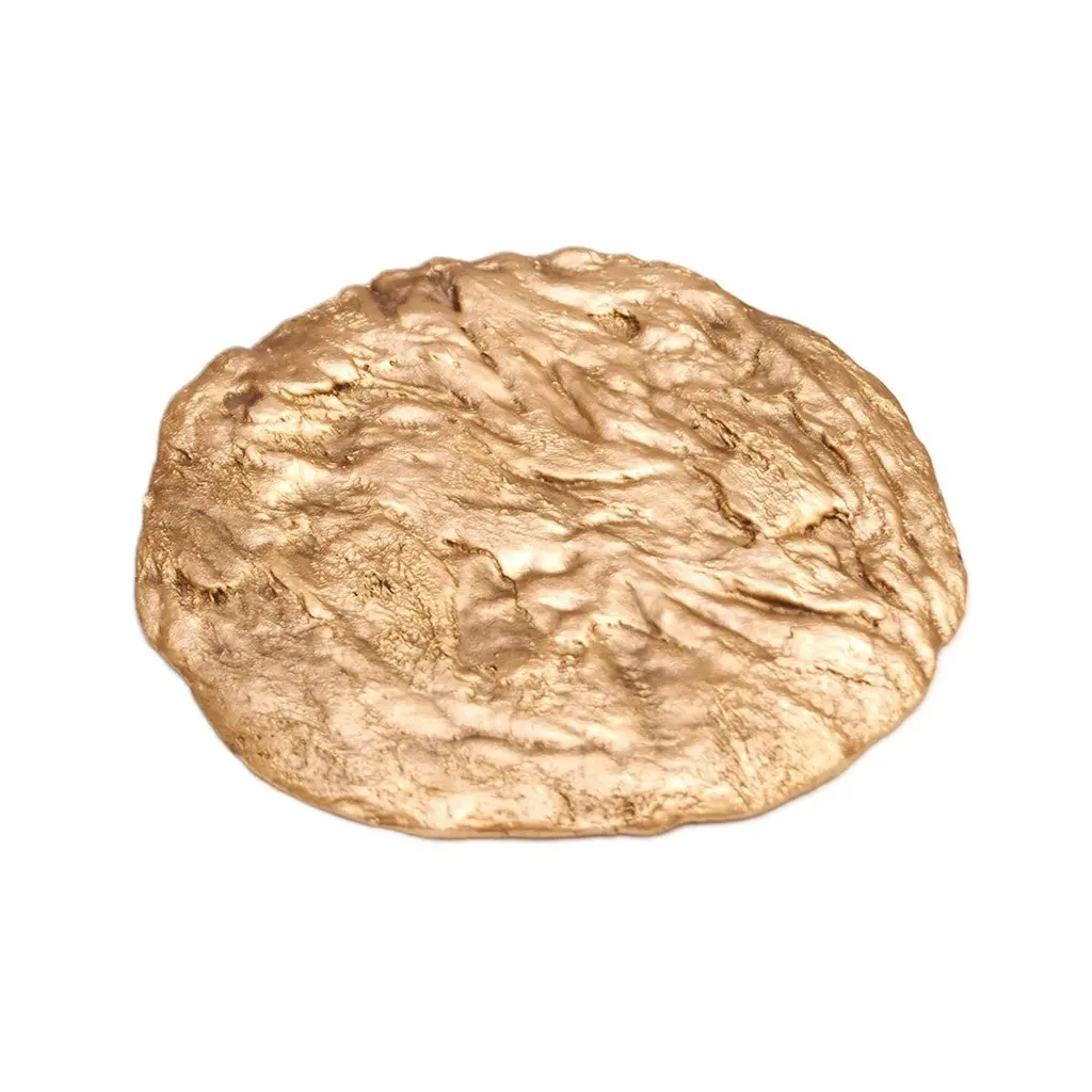 Brutalist Coaster 1 by Fakasaka DesignDimensions: W 17 cm D 17 cm H 0.9 cm.Materials: polished bronzeAlso available in black/brown bronze. BRUTALIST COASTER 1 CUP COASTER / BOTTLE COASTER / CANDLE TRAY /SMALL TRAY FAKASAKA is a design company focused on production of high-end furniture, lighting, decorative objects, jewels, and accessories. Established in 2007, Fakasaka is the eponymous design company by Brazilian artist Fernando Akasaka distinguished by a penchant for producing intricate detailed cast bronze collectible design objects, furniture and jewelries. Fakasaka explores the contrast between the manmade and the natural through shapes and finishes that create a clear aesthetic. The constant challenge to balance elements is met with an outcome that is a striking assortment of bronze furniture and objects in oxidised and polished finishes, accented with precious regional stones, granites and rich prehistoric reptilian motifs.