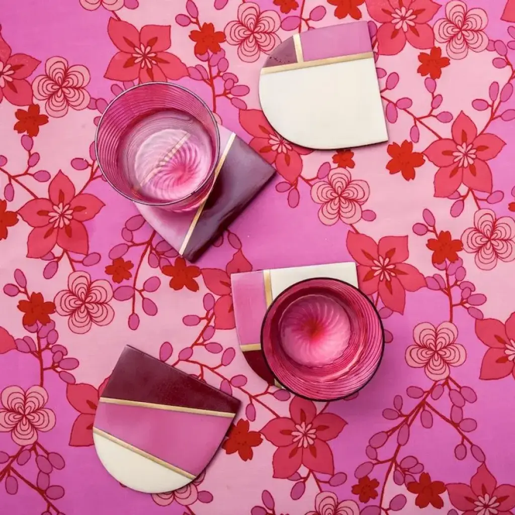 Capri Lacquer White/pink/red 3.7" Round Coasters, Set Of 4
