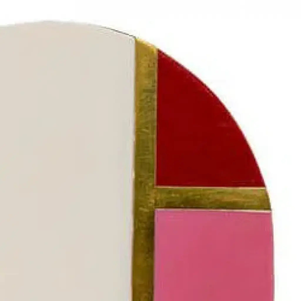 The gloss of lacquer paired with bands of vivid color and brass give these coasters a unique look, inspired by modern art. The half oval shape feels unexpected adding to its allure. Coordinate with Nice Lacquer Coasters.