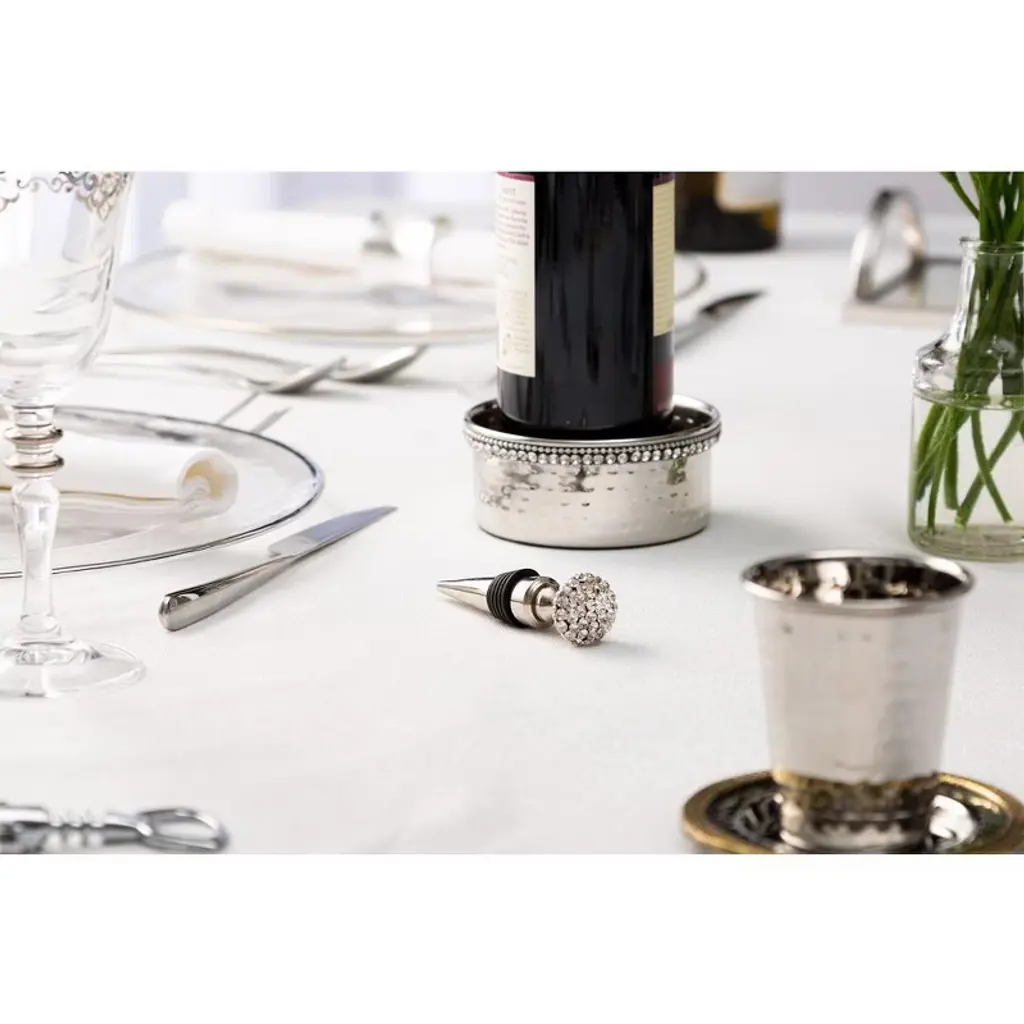 Classic Touch Stainless Steel Wine Coaster With Crystal Bead Edge, 4"d