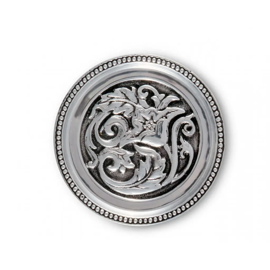 Beautiful Cactus Flower Concho Coasters are inspired by Native American jewelry and leather design, and crafted to serve ware for your home, bringing a touch of southwest romantic style to any room. Arthur Court’s set of 4 Concho Drink Coasters feature an ornate repousse design of the cactus flower. Beaded edging completes the look of these designer aluminum coasters.