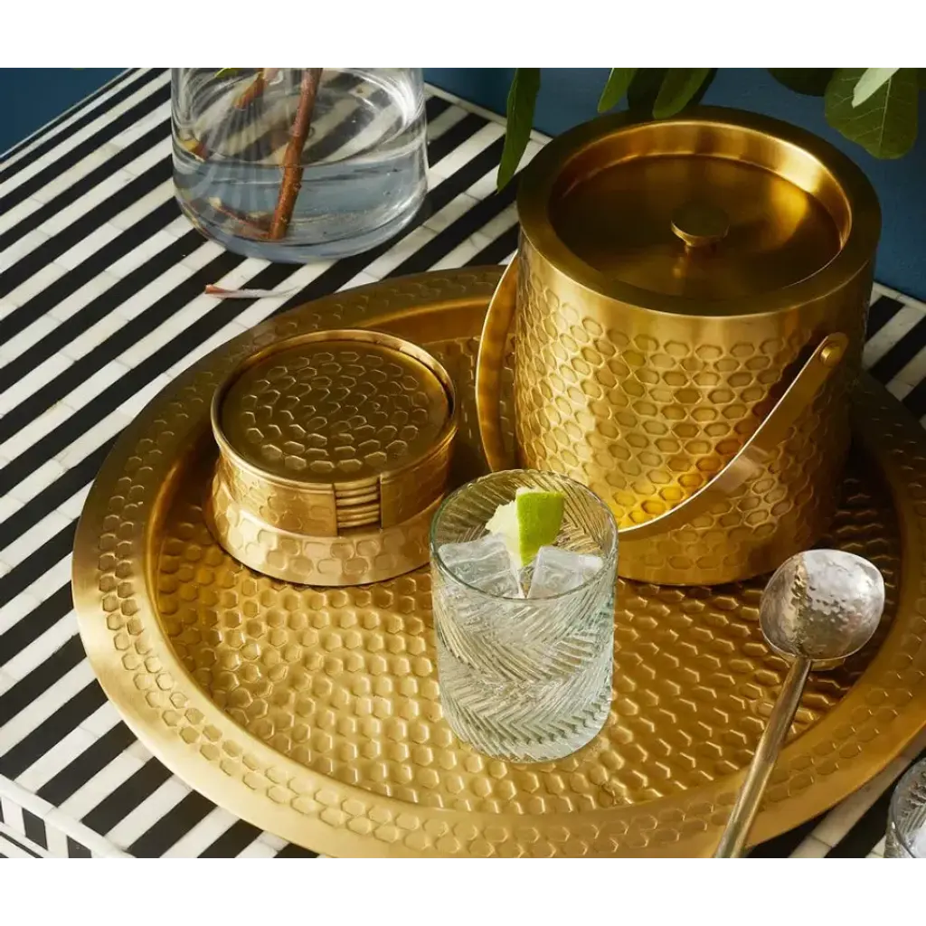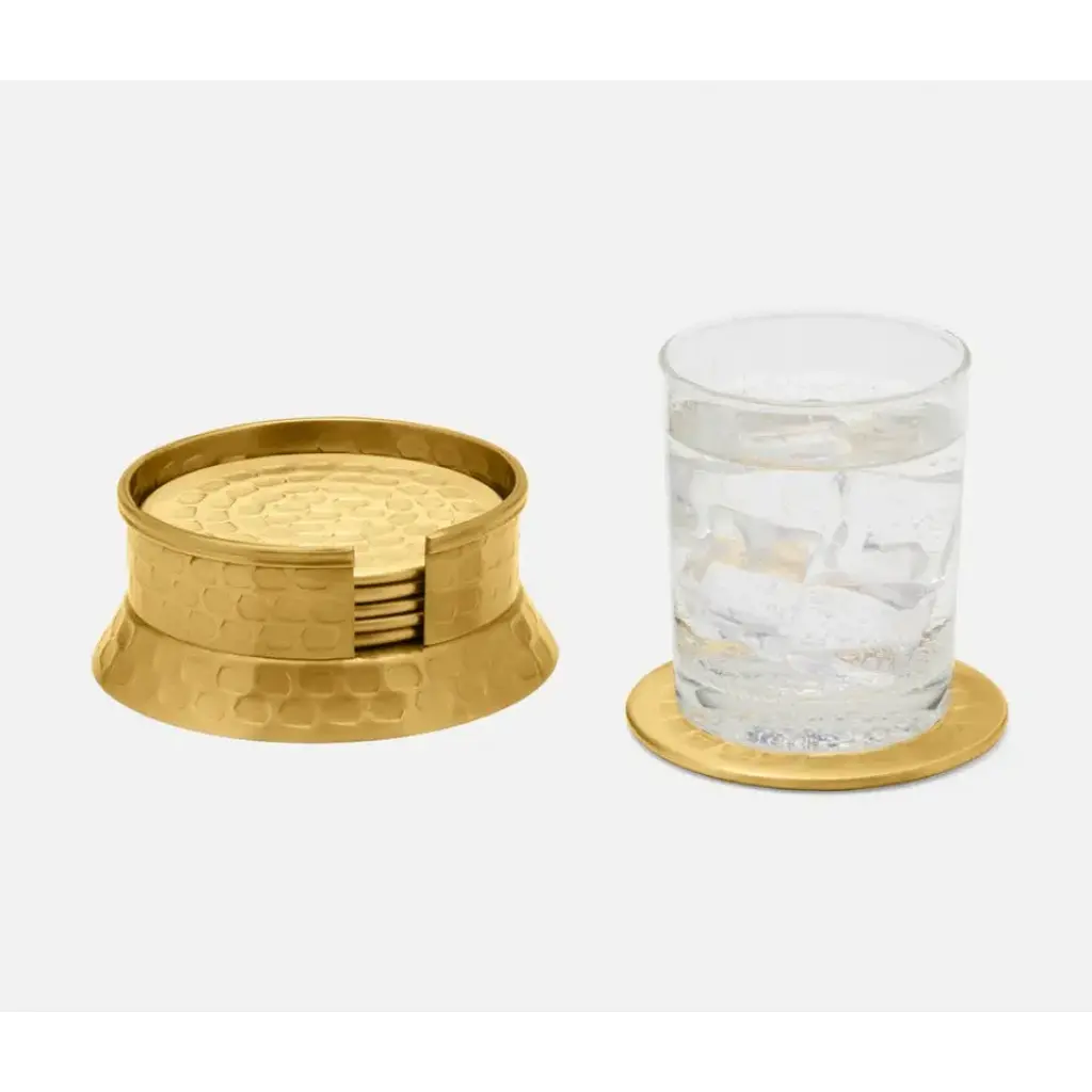 Conway Antique Brass, Coaster Set Of 6, Hammered Metal