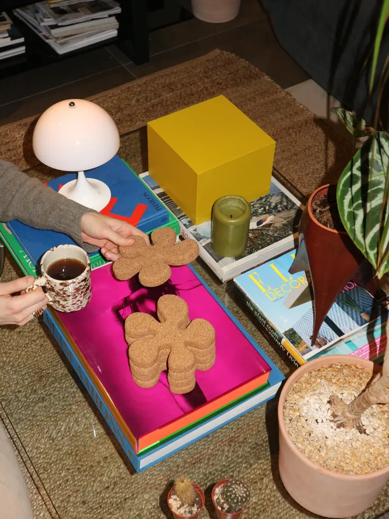 The Fleur Objet coaster.Made entirely of cork, the coaster makes the perfect addition to your favourite hot drink or evening tipple. It's super chunky and so elevates your drink to the next level, making everyone jealous of your table set up!CNC cut and hand sanded to achieve the smooth edges.14x14x2cmComes with care card in fully recyclable/biodegradable packaging.