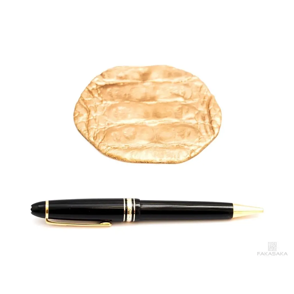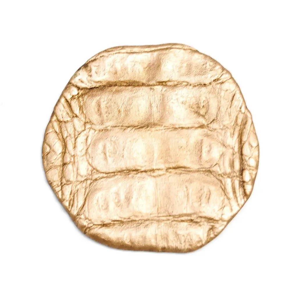 Crocodile coaster 2 by Fakasaka DesignDimensions: W 11 cm D 11 cm H 0.6 cm.Materials: polished bronze.Also available in dark bronze. CROCODILE COASTER 2 CUP COASTER / BOTTLE COASTER / CANDLE TRAY FAKASAKA is a design company focused on production of high-end furniture, lighting, decorative objects, jewels, and accessories. Established in 2007, Fakasaka is the eponymous design company by Brazilian artist Fernando Akasaka distinguished by a penchant for producing intricate detailed cast bronze collectible design objects, furniture and jewelries. Fakasaka explores the contrast between the manmade and the natural through shapes and finishes that create a clear aesthetic. The constant challenge to balance elements is met with an outcome that is a striking assortment of bronze furniture and objects in oxidised and polished finishes, accented with precious regional stones, granites and rich prehistoric reptilian motifs.