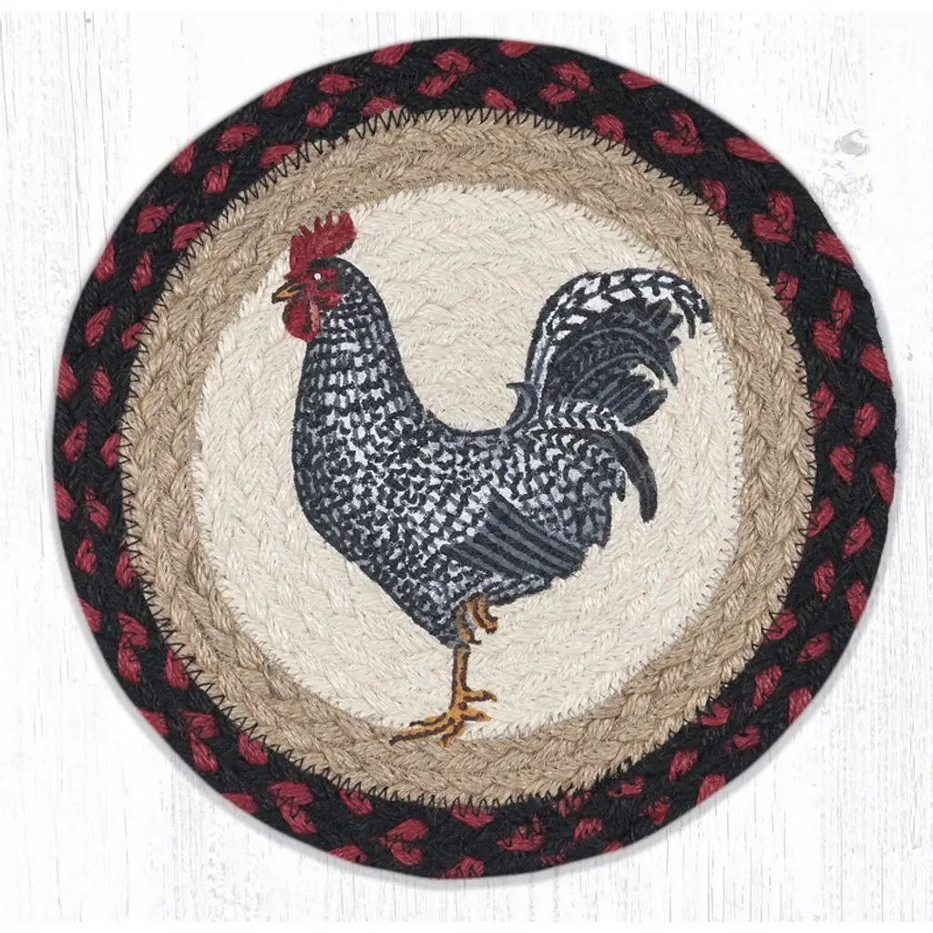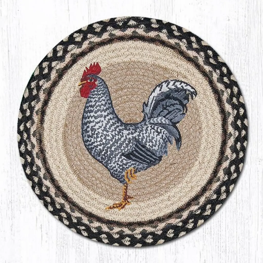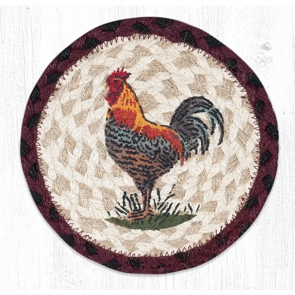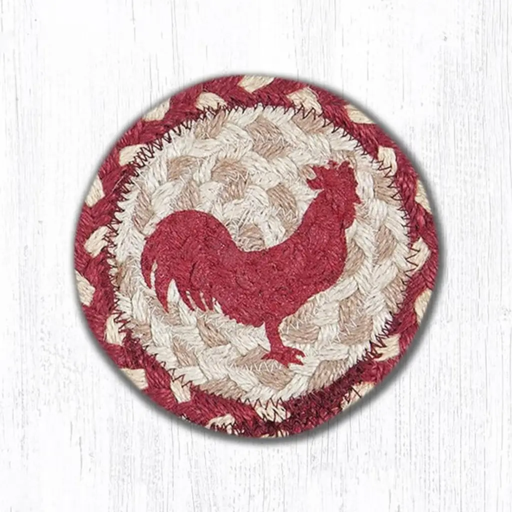 Earth Rugs Country Kitchen Rooster Coaster – Silhouette Print 5"x5" Rustic Table Accessory Bring the warmth of country living into your home with the Earth Rugs Rooster Silhouette Printed Coaster. Featuring a bold rooster design, this 5"x5" coaster blends farmhouse charm with everyday practicality, making it an essential for rustic kitchens, dining rooms, and farmhouse-inspired spaces. Key Features: Protect surfaces with a durable rooster silhouette printed coasterEnhance farmhouse decor with rustic country style designCrafted from high-quality, eco-friendly fibers for long-lasting usePerfect 5"x5" size fits most cups, mugs, and glassesLightweight and easy to store while offering strong protectionAdds charm to kitchen, dining room, or living room spacesSimple to clean and care for with basic maintenance