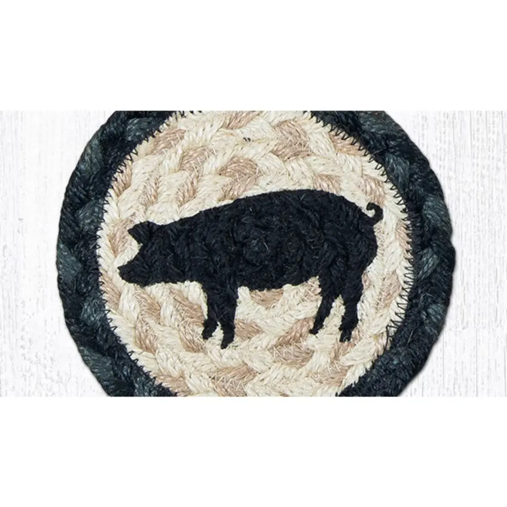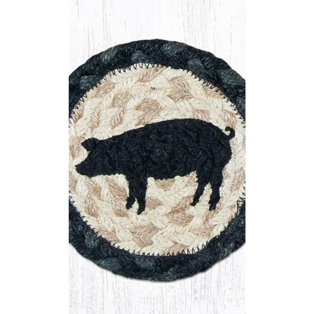 Earth Rugs Farmhouse Pig Silhouette Coaster 5"x5" Rustic Table Accessory