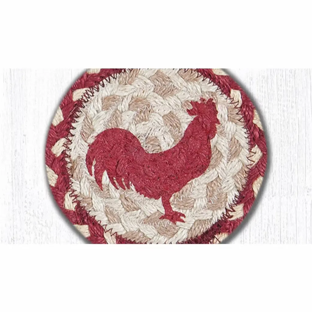 Earth Rugs Farmhouse Red Rooster Coaster – Rustic Country Kitchen 5"x5" Table Protector Bring a pop of color and rustic character to your home with the Earth Rugs Red Rooster Printed Coaster. Featuring a vibrant red rooster silhouette, this 5"x5" square coaster enhances farmhouse kitchens, dining tables, and rustic living spaces with timeless country style. Key Features: Protect your tables with a vibrant red rooster printed coasterAdds rustic farmhouse charm with a bold rooster designCrafted from eco-friendly, high-quality fibers for long-lasting use5"x5" size perfectly fits cups, mugs, and glassesLightweight, reusable, and easy to storeIdeal accent for farmhouse kitchens, dining rooms, or rustic living spacesEasy spot-clean maintenance ensures lasting functionality