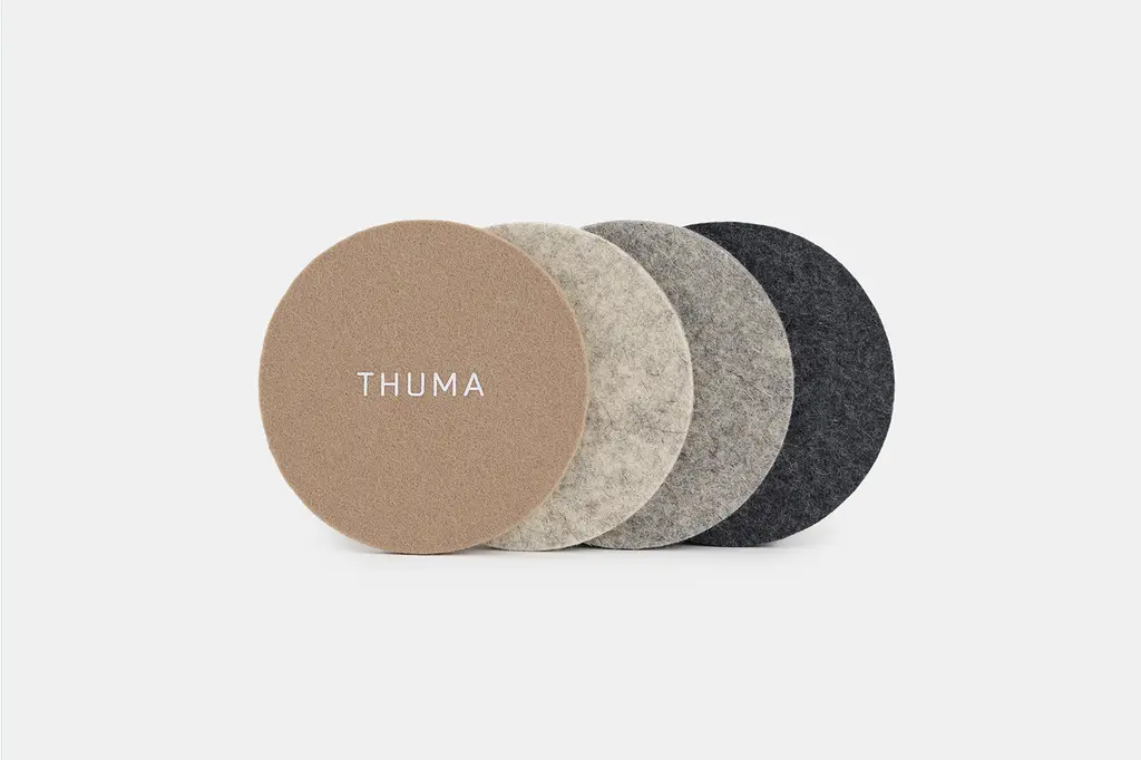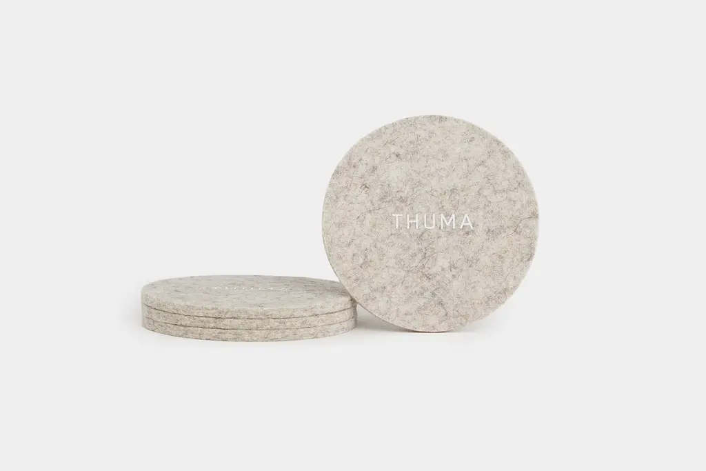 Mindfully crafted from 100% sustainable thick-cut Wool, the naturally water-resistant and quiet Felt Coasters protect surfaces from hot and cold drinks. Available in four distinct neutral shades. Set of four.