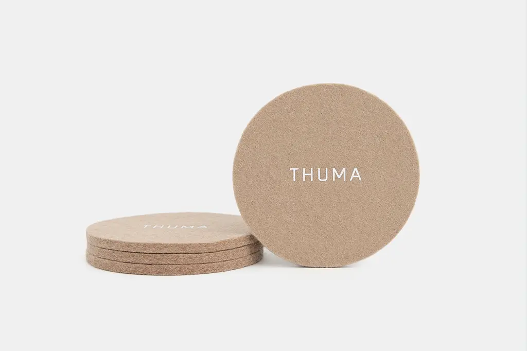 Mindfully crafted from 100% sustainable thick-cut Wool, the naturally water-resistant and quiet Felt Coasters protect surfaces from hot and cold drinks. Available in four distinct neutral shades. Set of four.