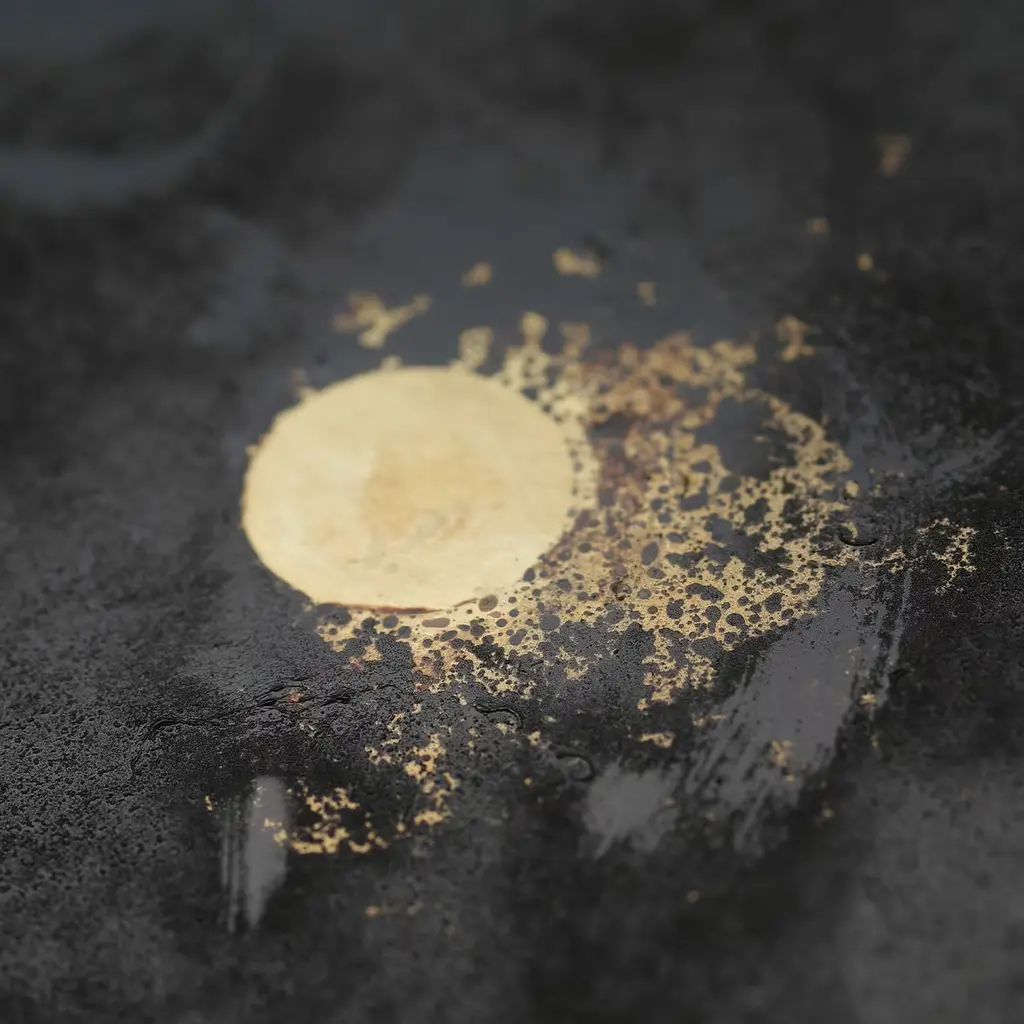 Azure clouds veiled by golden accents set against a deep-black backdrop make up the inspiring design of this six-piece coaster set. Carefully handcrafted of brass and decorated by the unpredictable hues and traceries oxides create, each coaster comes with a velvety back for a steady grip on the table. The artisan methods employed to ensure the exclusivity of every piece.