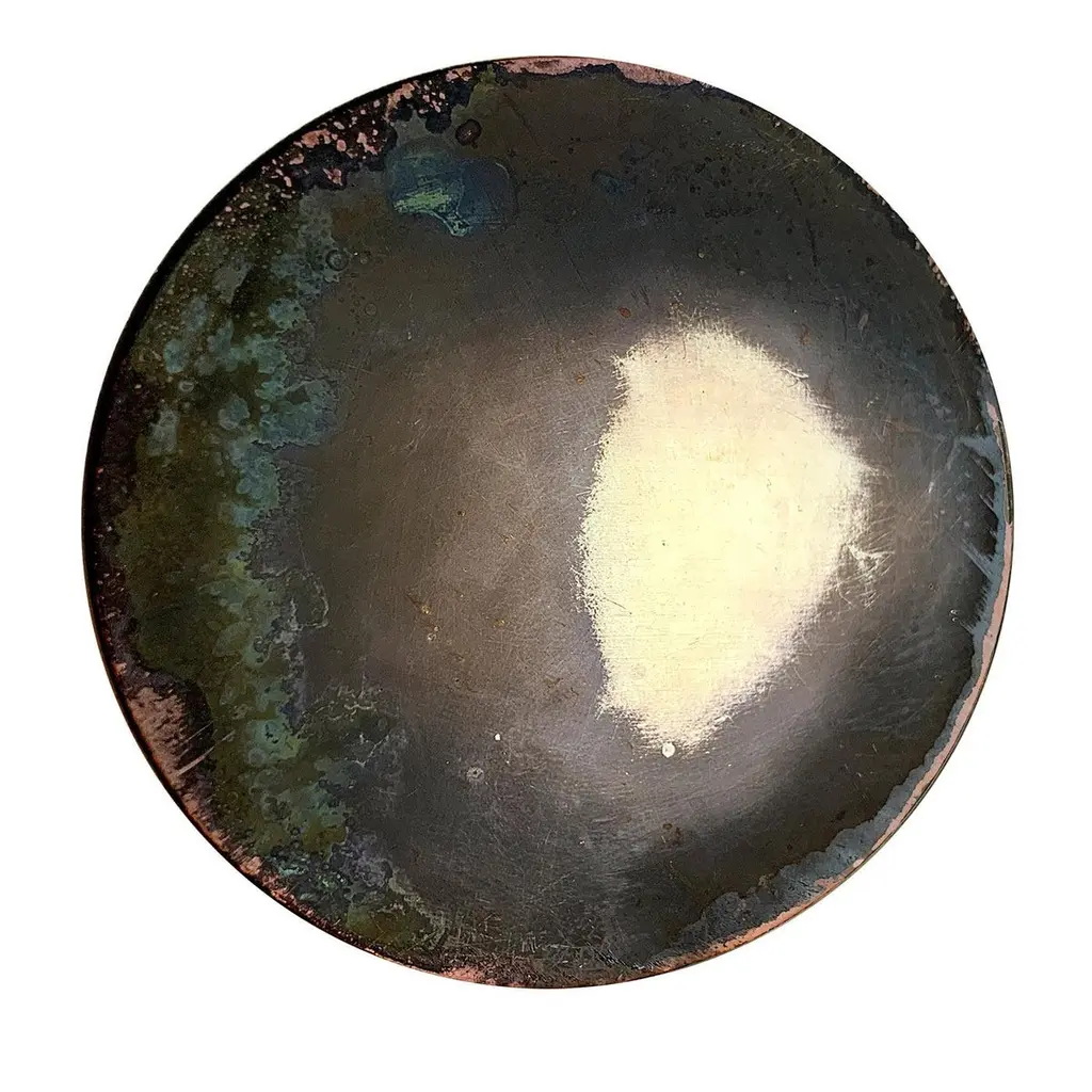 Part of the Geografie Emozionali Collection, this set of six coasters is handcrafted from a bright brass base treated with acids and oxides to draw singular traceries, unique gradients, and a distinctive corroded look. The velvety material covering their back ensures a steady grip, while the multiple layers of an antioxidant to prevent corrosion allowing their aesthetic to withstand the test of time.