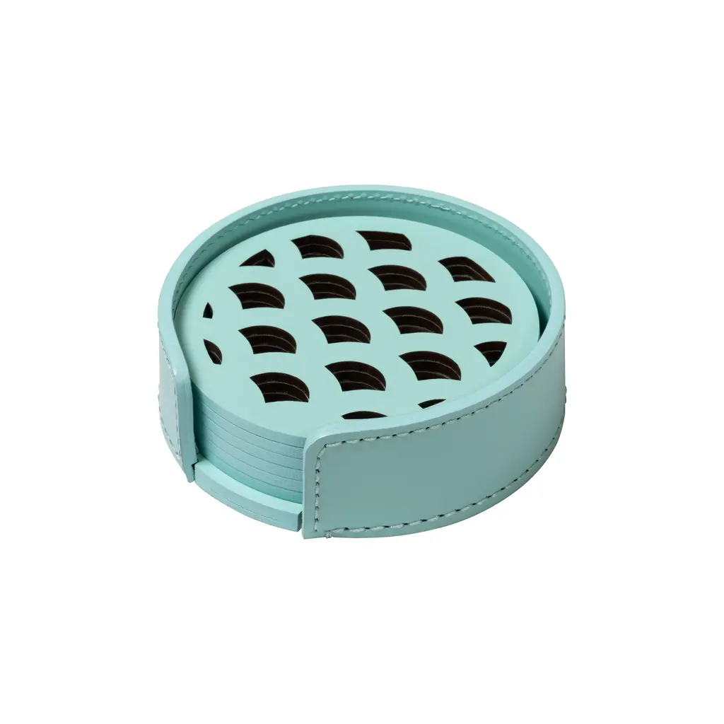 Inspired by the delicate beauty of watercolors, the Giobagnara x Rudi Acquerello Round Coaster Holder with 6 Coaster is an artistic accent from the Giobagnara and Rudi collaboration. Expertly handcrafted in Italy, this set is formed from Tecnocuoio—a fine regenerated leather with a durable, water and UV-resistant finish. Six round coasters nest perfectly within a matching holder, protecting surfaces while adding a sophisticated pop of color. The perfect fusion of material innovation and elegant design, it’s an essential for any host who appreciates beauty in everyday details. Highlights: