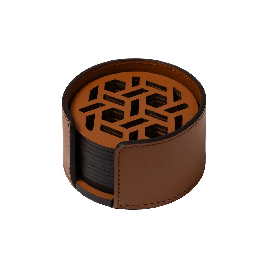 Inspired by the delicate beauty of watercolors, the Giobagnara x Rudi Acquerello Round Coaster Holder with 6 Coaster is an artistic accent from the Giobagnara and Rudi collaboration. Expertly handcrafted in Italy, this set is formed from Tecnocuoio—a fine regenerated leather with a durable, water and UV-resistant finish. Six round coasters nest perfectly within a matching holder, protecting surfaces while adding a sophisticated pop of color. The perfect fusion of material innovation and elegant design, it’s an essential for any host who appreciates beauty in everyday details. Highlights: