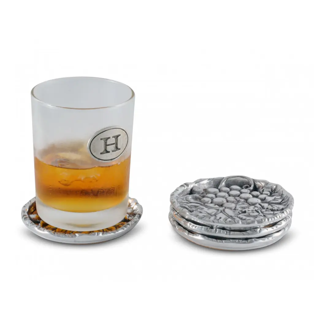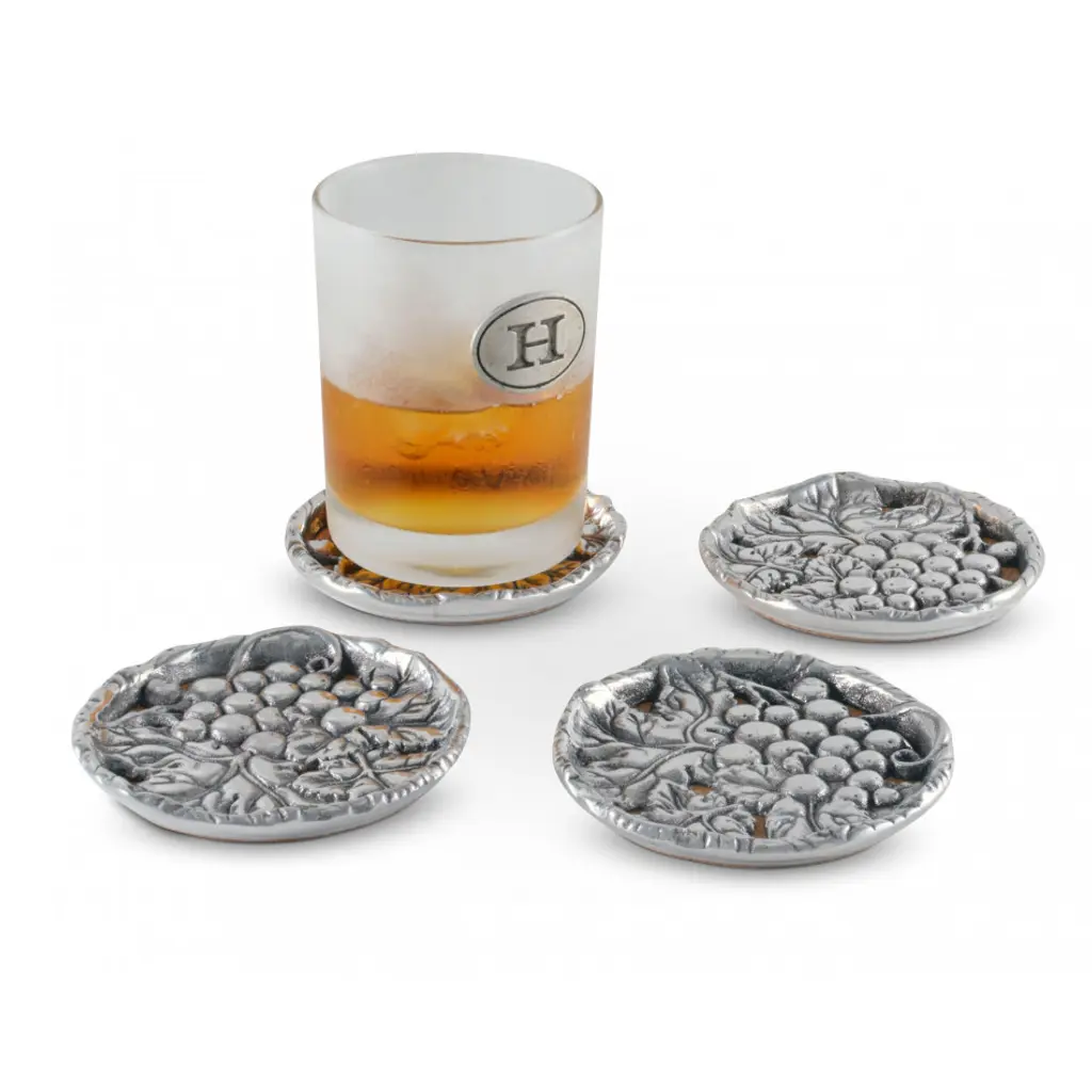 A raised edge keeps drinks secure and your table spot free when you use Arthur Court’s Grape Drink Coasters. The coasters feature a bunch of grapes within a cluster of leaves, as you would find them on the vine. Launched, in the early 1990's our most popular line has grown and evolved to offer a shimmering assortment to satisfy all your entertainment needs.