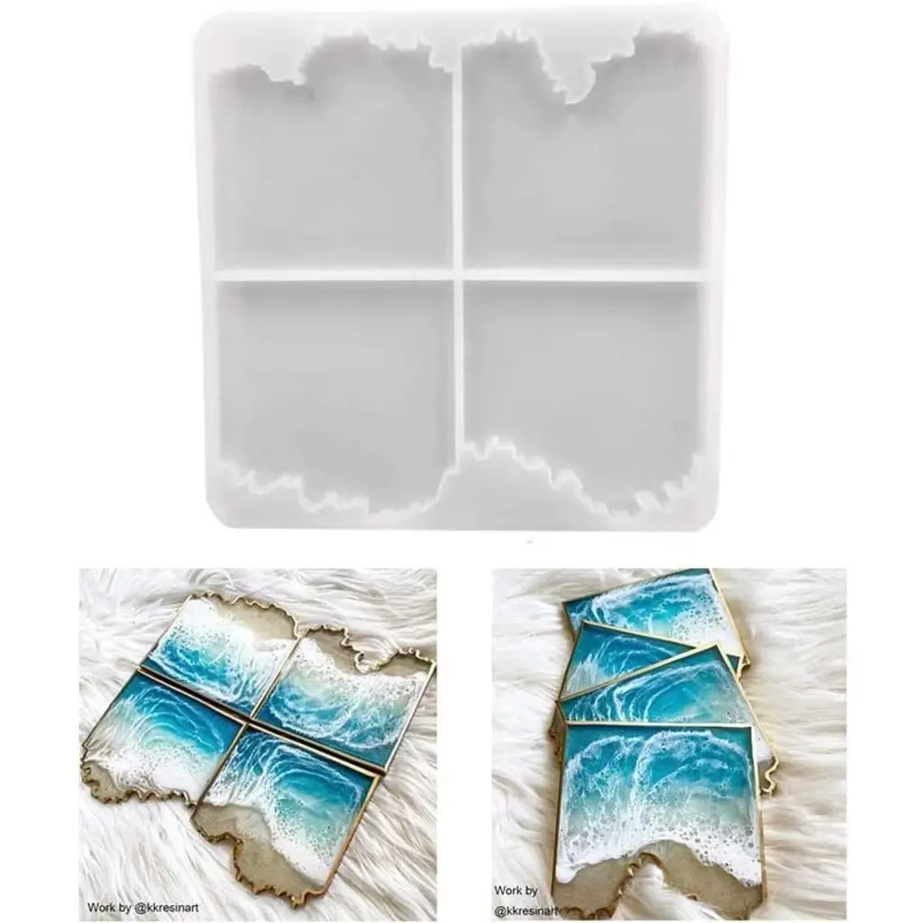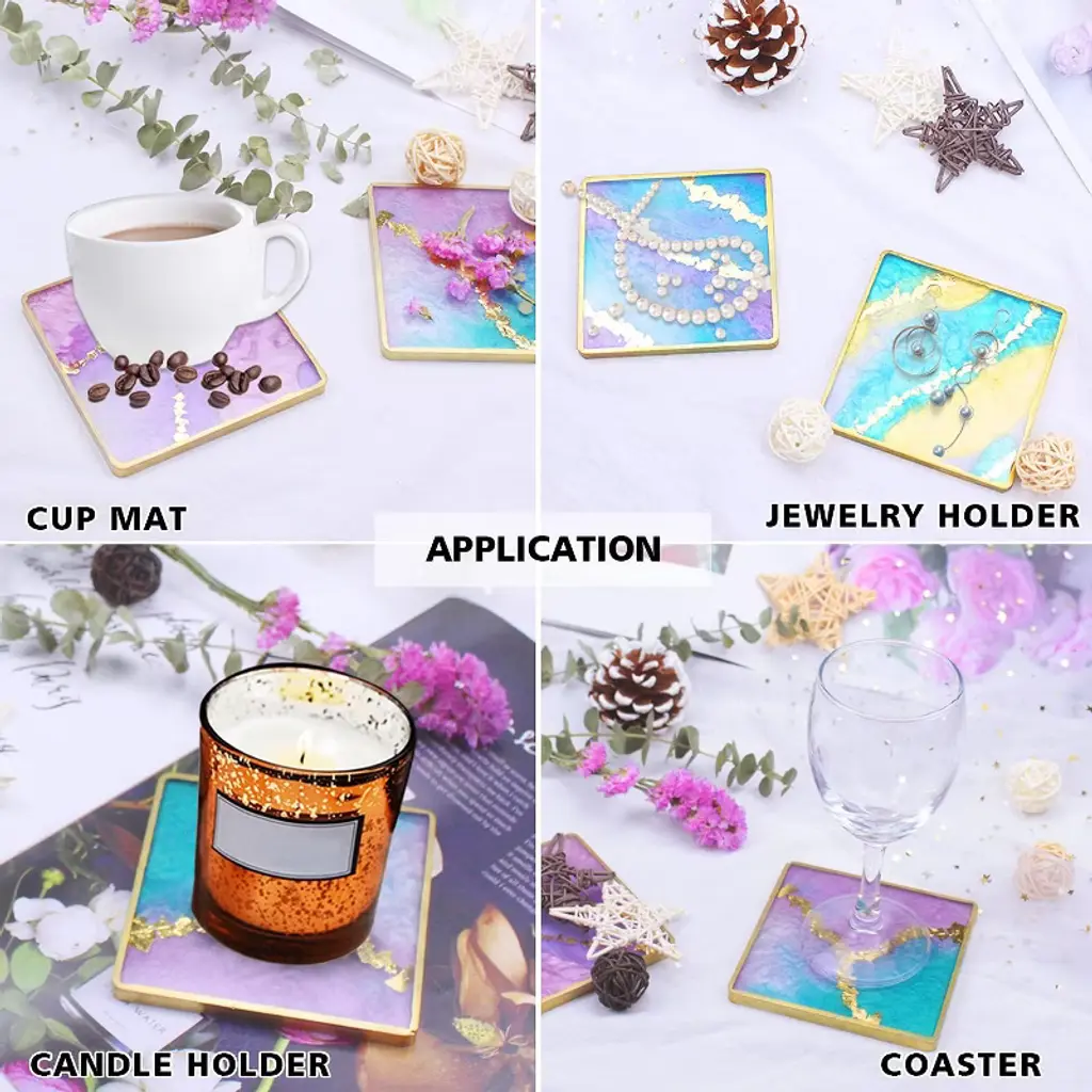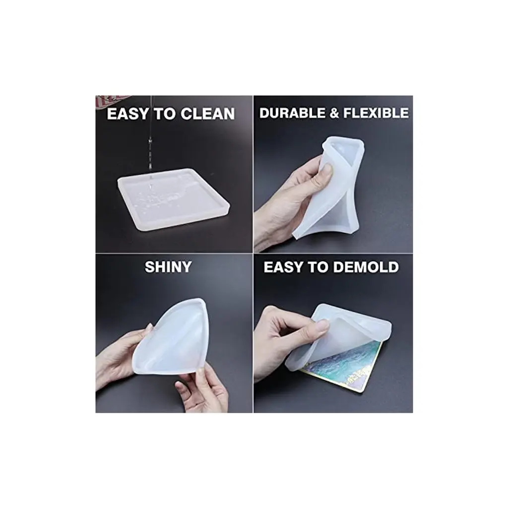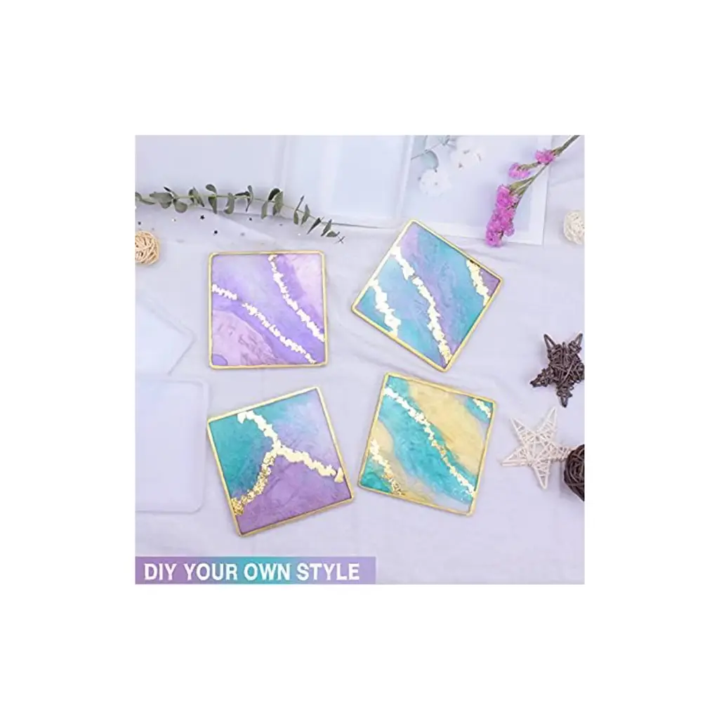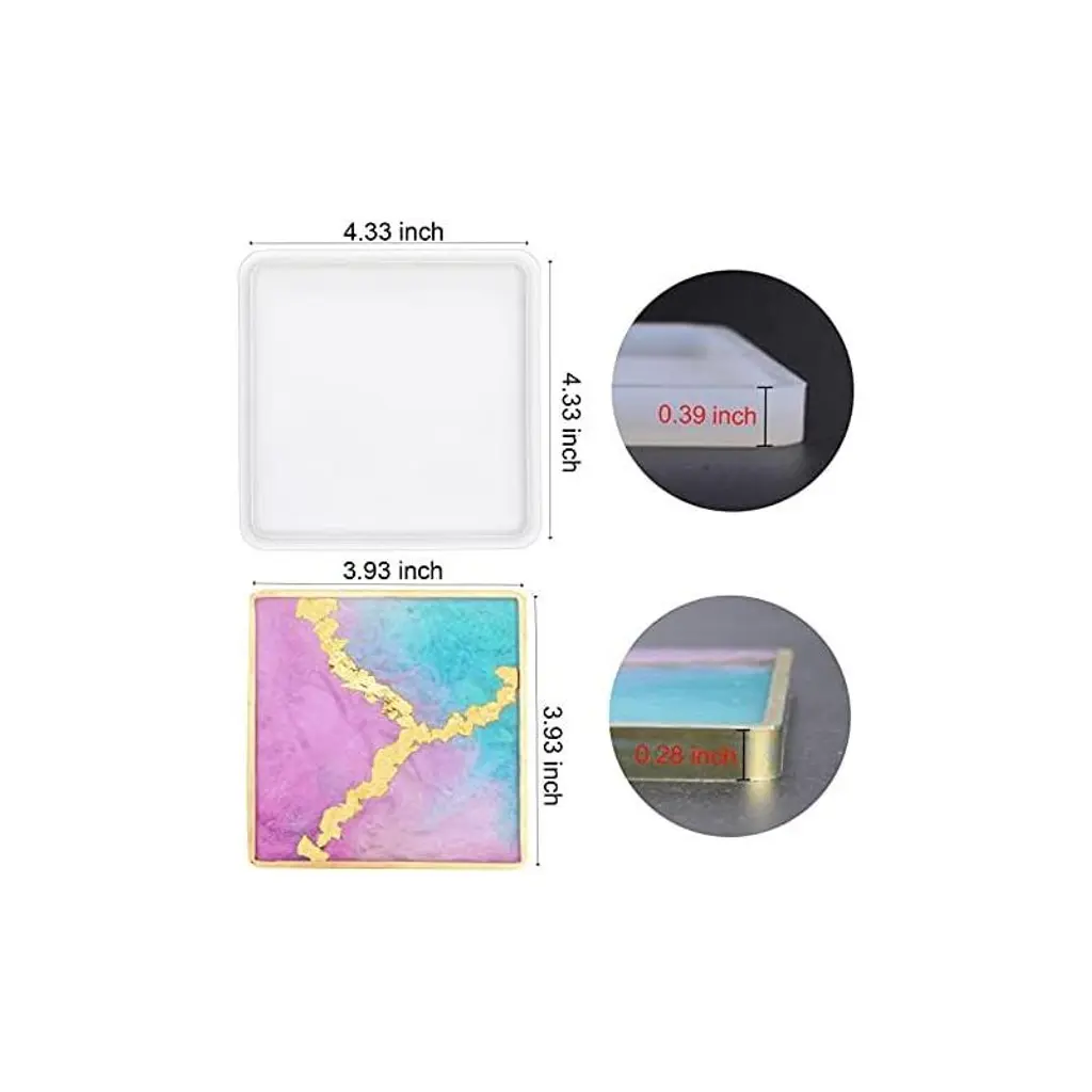 【Square Coaster Mold】: 4.33*4.33*0.39 inch square coaster molds, the finished product is 3.93*3.93*0.28inch. About 75g/2.64ounces is needed to make a square coaster depending on how thick you fill it.【Premium Silicone Material】: These coaster molds are made of silicone with shiny surface, the finished products has a mirror effect. These resin casting molds are very flexible, easy to demold, reusable, easy to clean.【Wide Range of Application】: The resin coaster molds can be used to make coasters, bowl mats, trinket holder, candle holder, decor etc.【Creative DIY Project】: These silicone resin molds are compatible with most casting material such as epoxy resin, UV resin. You can add some resin pigment, resin dye to create personalized art craft projects in differnt ways.【Ideal Gift】: Such a great gift for yourself or someone you care about. Using these silicone resin molds to make personalized geode agate pieces for your family, friends for unique Christmas gifts.