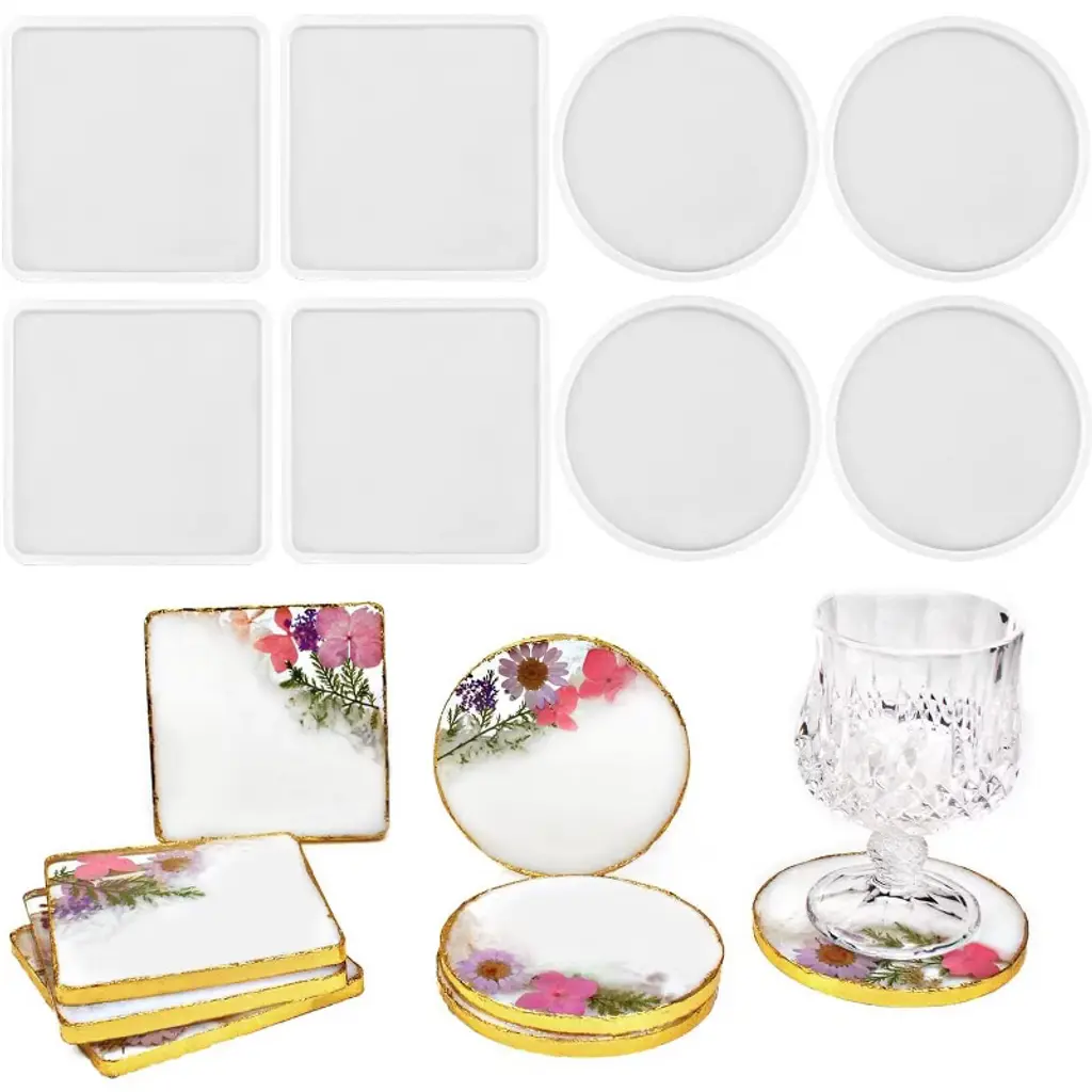 Jdiction 8-pack Thick 4" Silicone Coaster Mold Set - 4 Round & 4 Square Resin Casting Molds