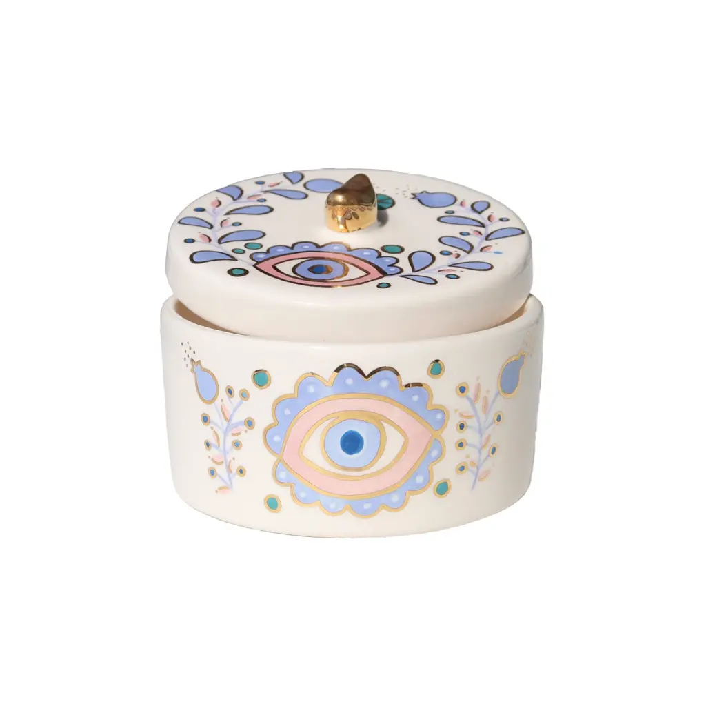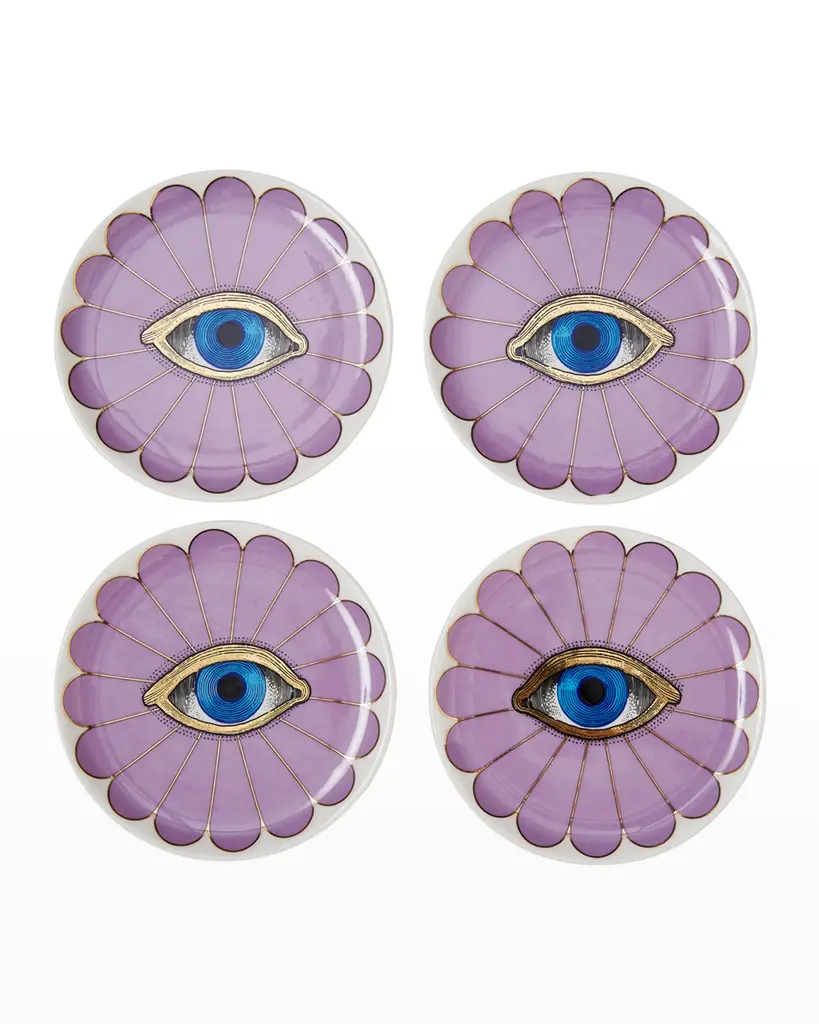 Gold-lined baby blues blooming on a lavender petal backdrop are a sight for any stylish tablescape, and the perfect set of peepers for pepping up your cocktail hour. Packaged in a nifty gift box, our fleur coasters make the perfect hostess present (or pick-me-up for yourself) Made of porcelain Approx. 4"L x 4"W x 0.5"T 4-piece set Item Weight (Lbs.): 0.5 Hand wash Imported About Jonathan Adler: Potter, designer, and author Jonathan Adler launched his namesake brand after leaving his day job to pursue his first love: pottery. Today his offerings span furniture, lighting, home décor, and more plus countless iconic interior projects—and over 25 stores—all dedicated to bringing Modern American Glamour to your life.