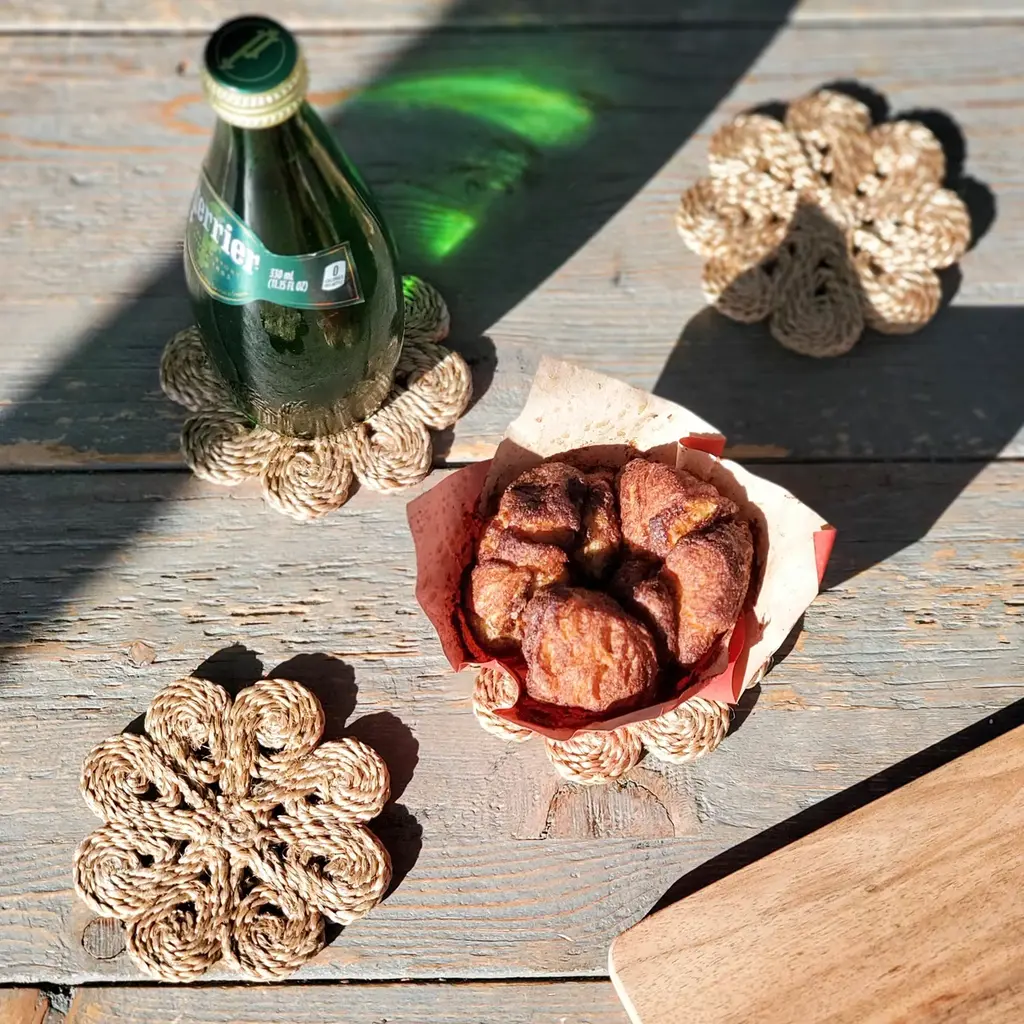 Handmade from 100% natural fiber, Jute, this braided coaster is beautifully textural with subtle coloration that will bring a unique and natural-looking element to your space and brighten your tabletop. These 100% Jute Coasters can be used for all beverages, and protect your table from scratches and watermarks. Each product is designed and curated by KORISSA, sustainably handmade by Fair Trade artisans in Bangladesh.