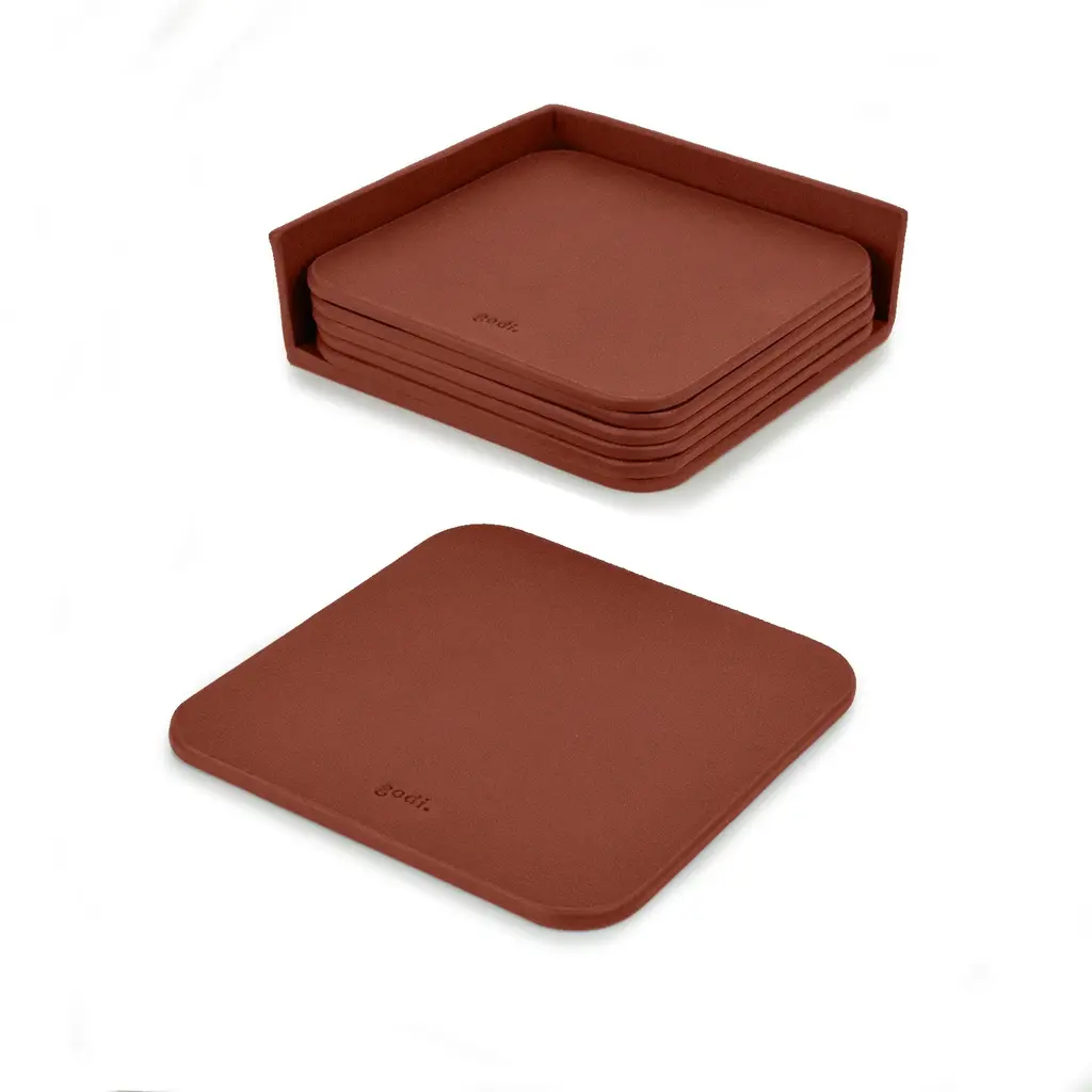 Large Leather Coasters - Set Of 6 - Rust Brown