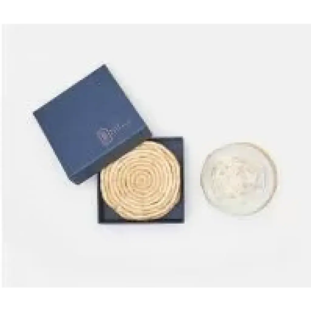 Four round coasters are woven from Bleached banana bark. Our Lauren is the ideal way to make a casual tabletop look thoroughly considered. Blue Pheasant's products are handmade with care by artisans using natural materials. They are not mass produced, so variation between products should be expected, and this is why we love them! It is these irregularities that makes Blue Pheasant what it is—a special brand whose collections are distinctly handmade, full of charm and originality you’ll never find in machine-made products.