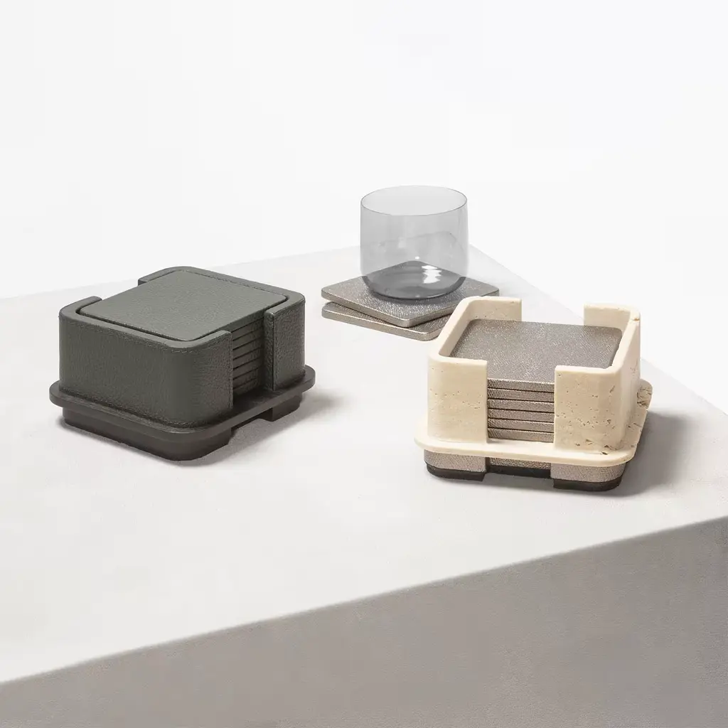 Lloyd Leather & Wood Coaster Holder With 8 Coasters