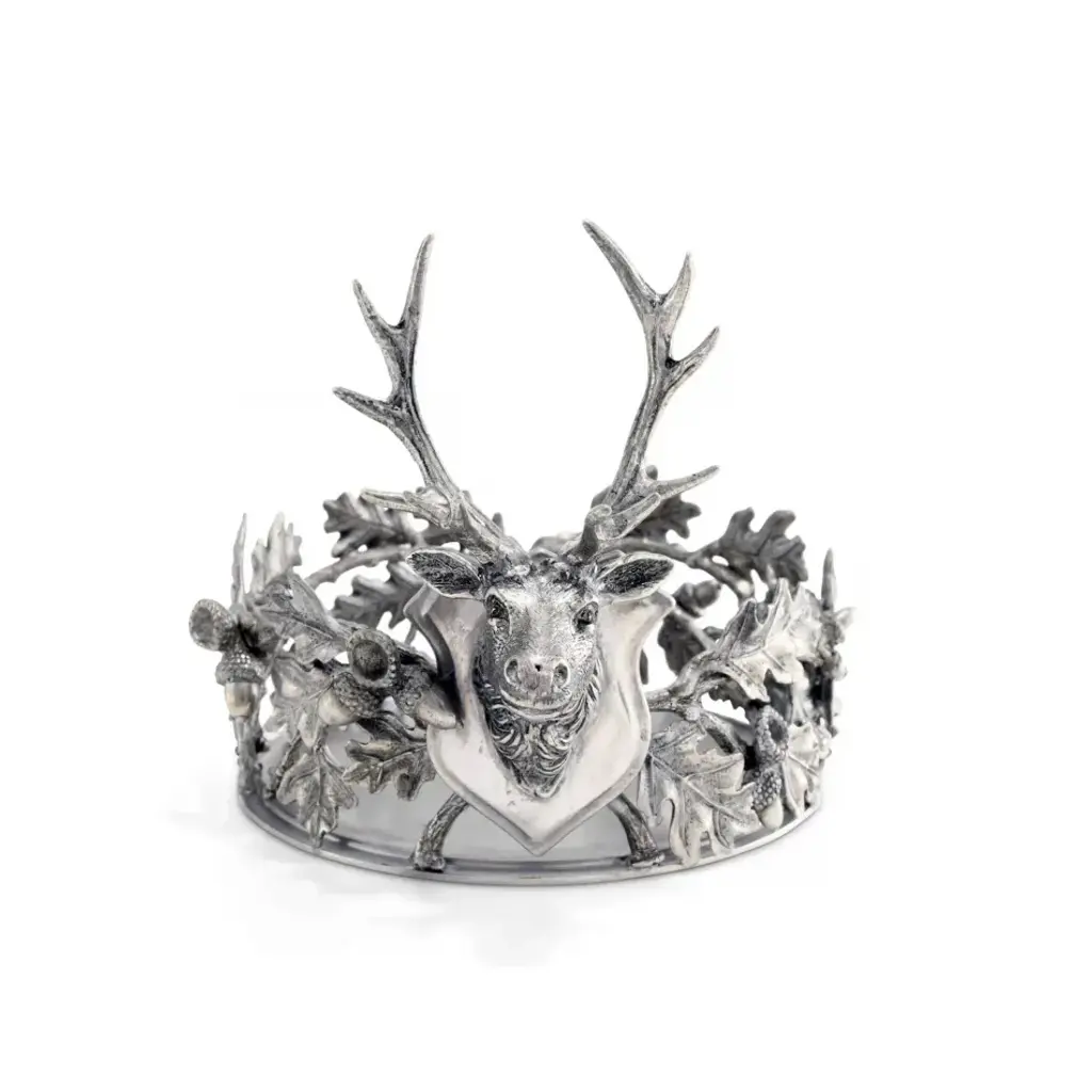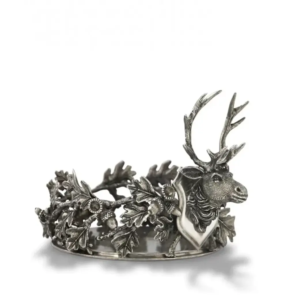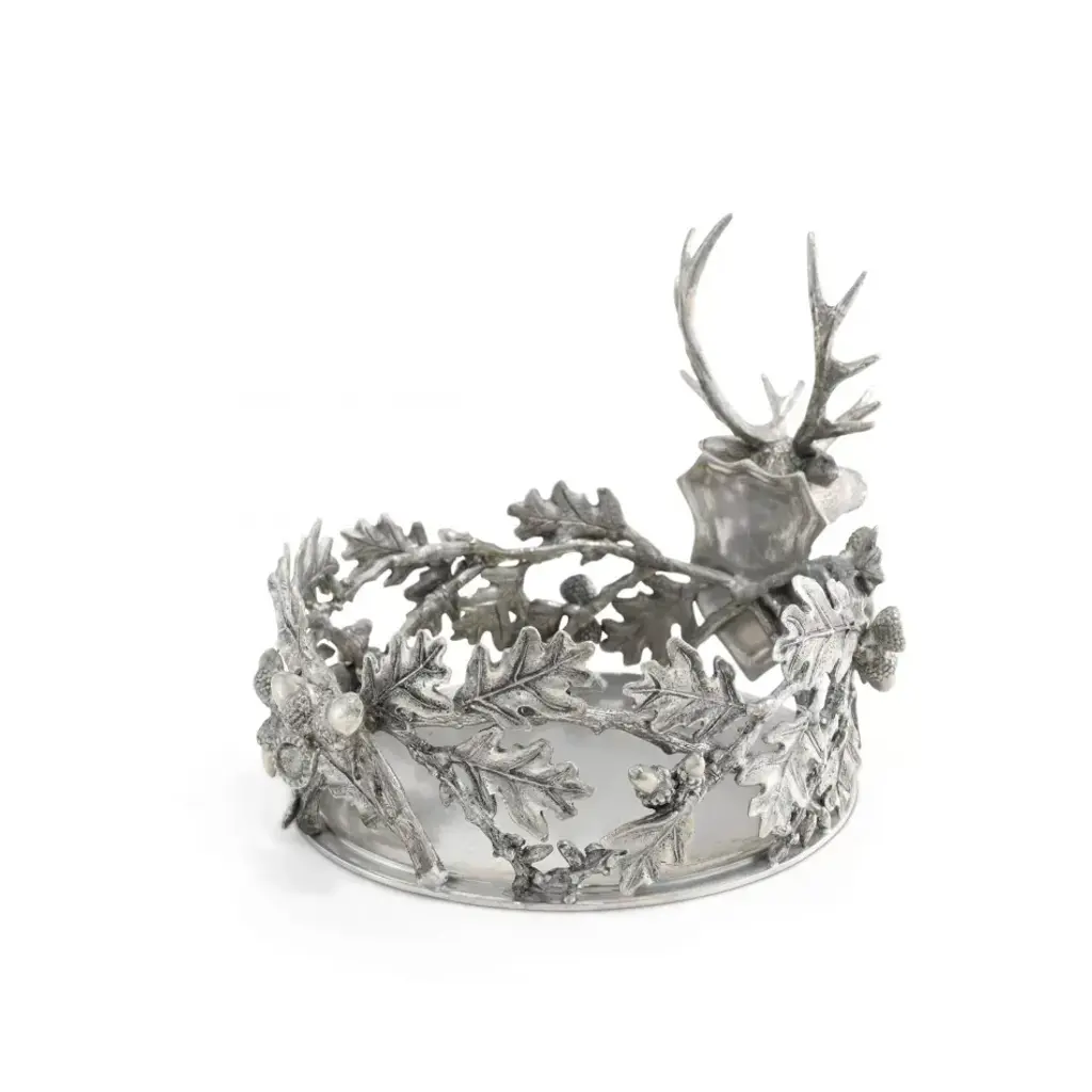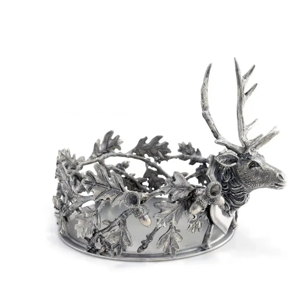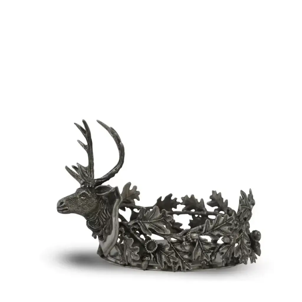 Hand-cast and finished in luxury grade pewter, artistic details include an intricate wreath of tiny acorns and oak leaves to surround your wine bottle. A 3-D stag head sporting a full rack of magnificent antlers adds gravitas and rustic style. Unique and rich with detail, the Vagabond House Black Forest Wine Coaster is an object of desire. Vagabond House is a family-owned American company specializing in fine pewter tableware, servingware and giftware. Largely inspired by nature, their exclusive products are designed to be unique, functional heirlooms for those who seek to express tradition and style in both family and formal entertaining.