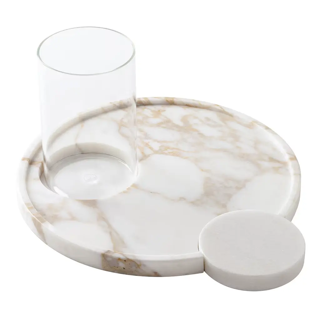 Marble Venice Fog Coaster In Holder, Set Of 4 (Coaster Diam 4.25; Container 4.75x2 In)