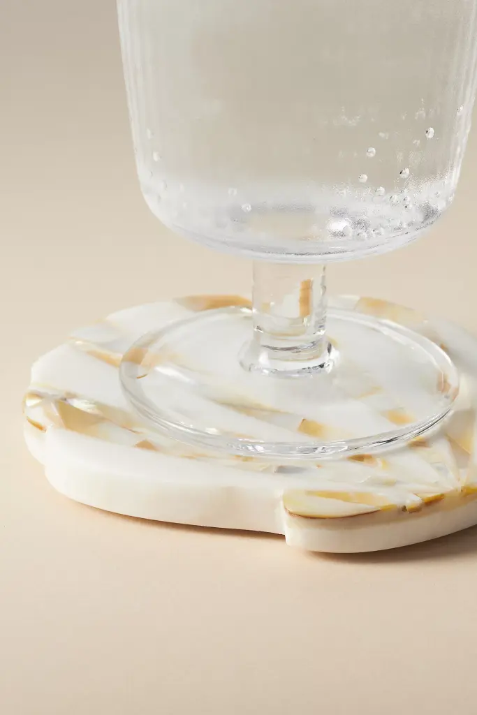 Hand-carved from white marble and mother-of-pearl, the Marina Shell Coaster is a must-have for the distinguishing host or hostess.