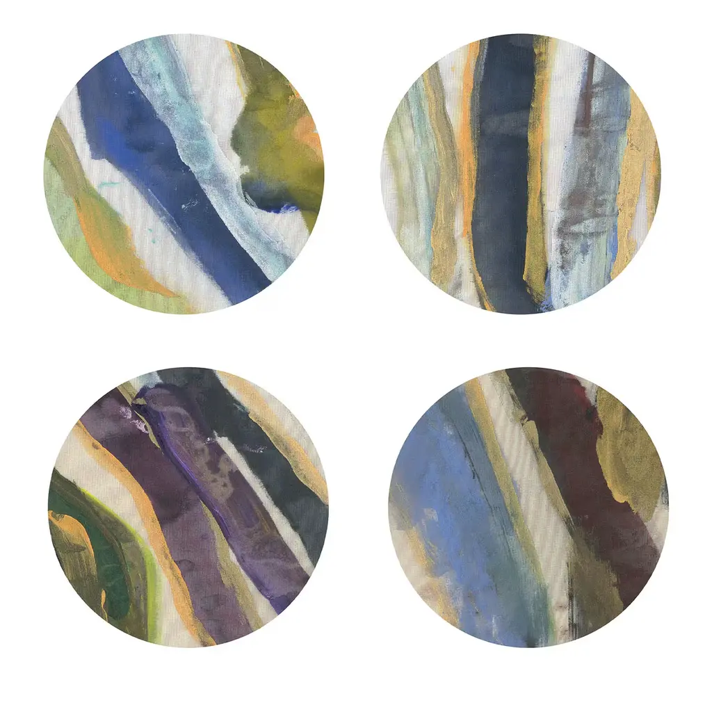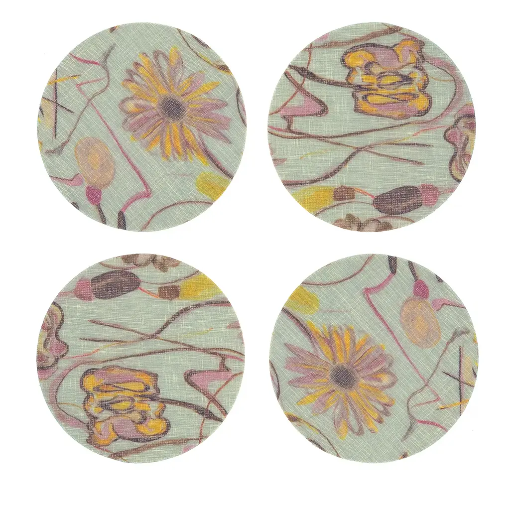 Colorful medallions are the subject chosen by artist Luisa Longo for the handpainted motif digitally printed on this set of eight linen coasters. Each coaster offers a different glimpse of the original artwork, an assortment of exceptional artistic charm enriched by a pleasant peach-peel texture. Flexible and resistant to heat, abrasions, and stains, the set can be easily cleaned with just a drop of soap and water.
