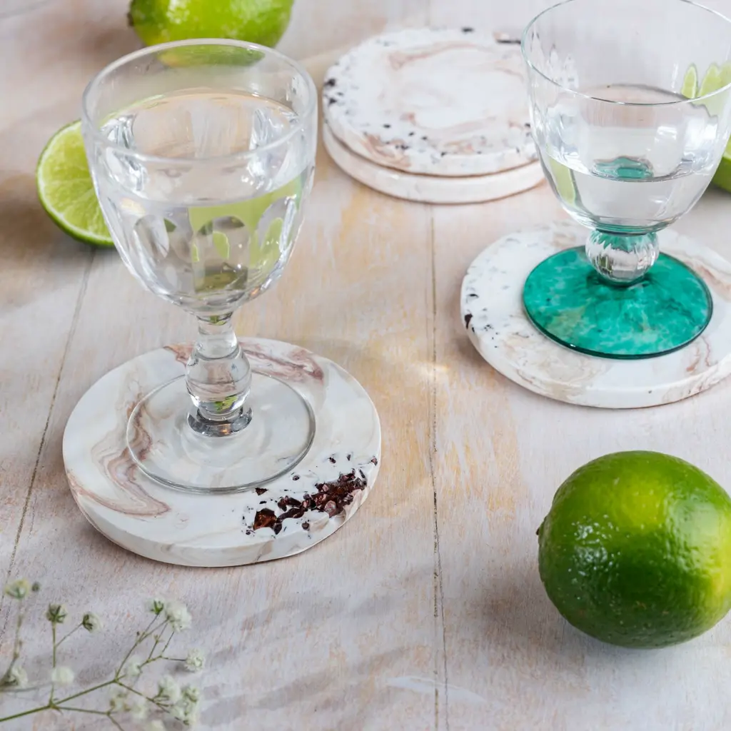 Inspired by the stylish designs in our collection, each of our handcrafted coasters has a functional and decorative design. Embellished with colorful crystals and aesthetic lines, these coasters are packaged in sets of four and will add an elegant touch to your environment.