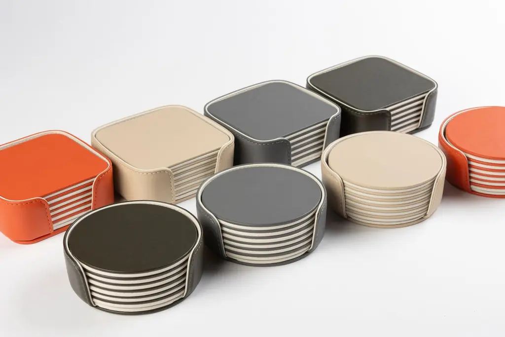 Mondrian-inspired coasters are quintessential art and design for your table.Made from high-quality leather, they exhibit the geometric precision and chromatic boldness distinctive of Mondrian's works.These rigid coasters are available in both a square and round version to suit your personal preferences.