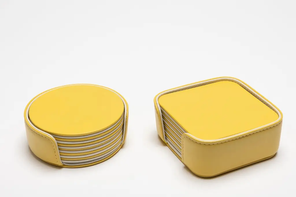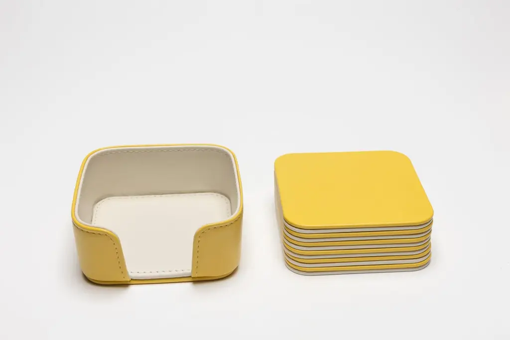 Mondrian-inspired coasters are quintessential art and design for your table. Made from high-quality leather, they exhibit the geometric precision and chromatic boldness distinctive of Mondrian's works. These rigid coasters are available in both a square and round version to suit your personal preferences.