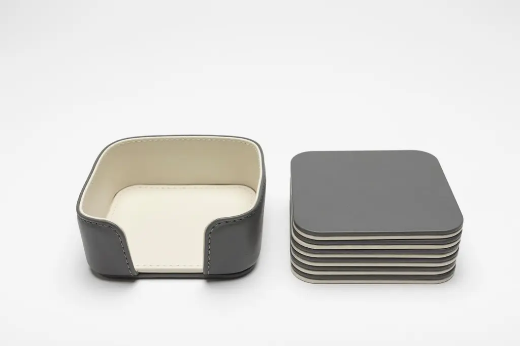 Mondrian-inspired coasters are quintessential art and design for your table. Made from high-quality leather, they exhibit the geometric precision and chromatic boldness distinctive of Mondrian's works. These rigid coasters are available in both a square and round version to suit your personal preferences.