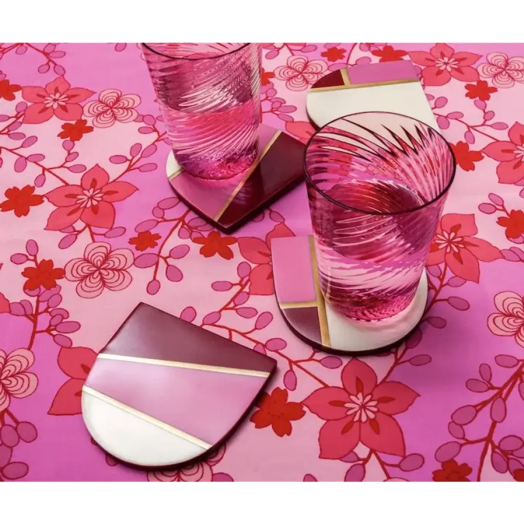 Nice Lacquer White/pink/red 3.7" Round Coasters, Set Of 4