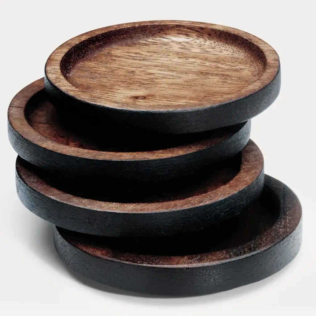 Style meets practicality. Crafted from acacia wood in a deep stain that highlights lively natural graining, these coasters add an earthy + elevated touch to your space. They’re durable + designed for everyday use – but wash by hand to keep them looking their best. Set of four.
