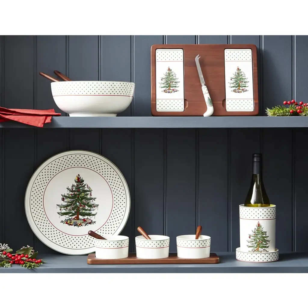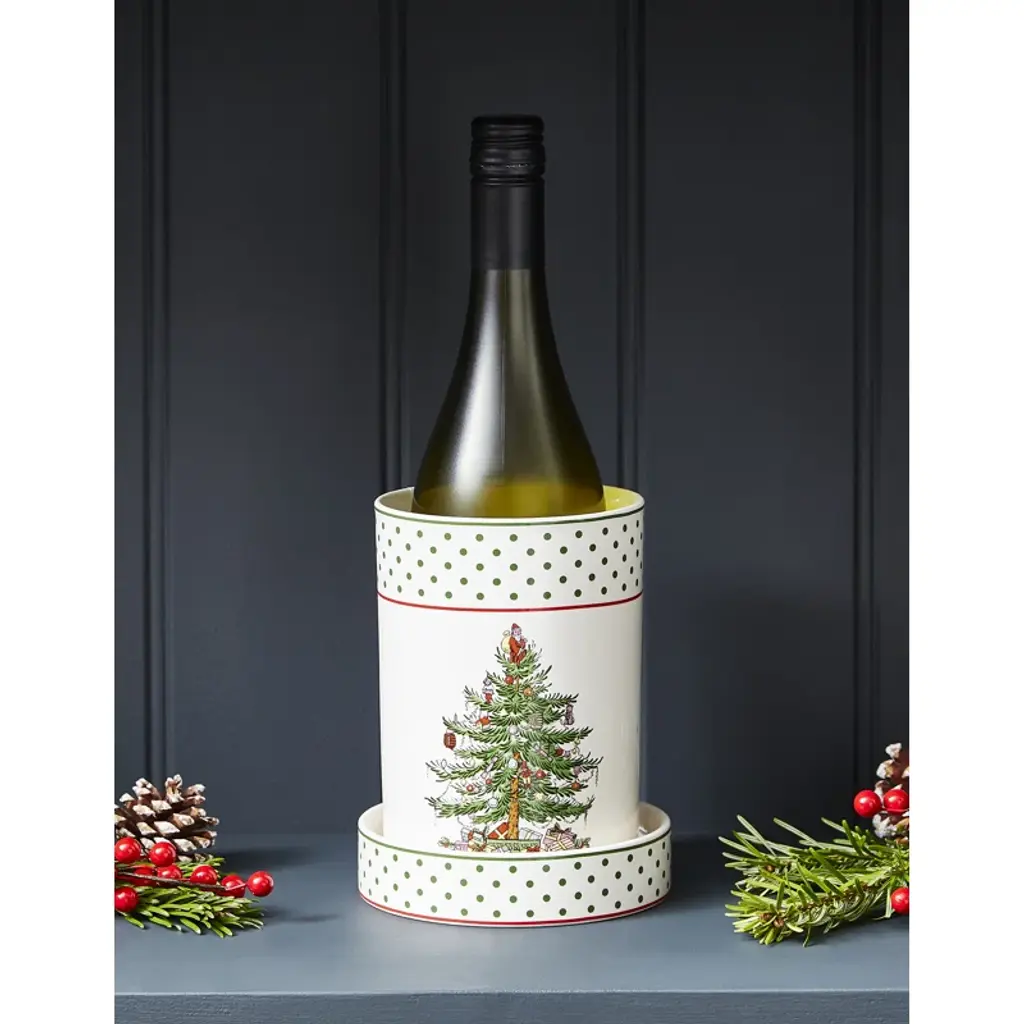 Chill your wine with festive flair using the Polka Dot wine chiller. Includes a matching coaster for stylish holiday serving.