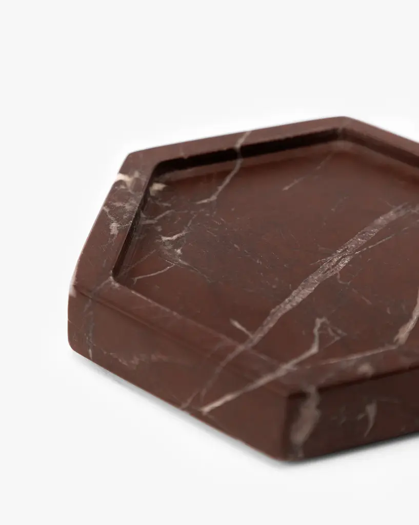 Bring natural elegance to your entertaining with our Ridley Stone Coasters. Crafted from richly veined stone in a striking hexagonal shape, each coaster showcases organic variation and refined detail, protecting your surfaces while adding a timeless, sculptural touch.